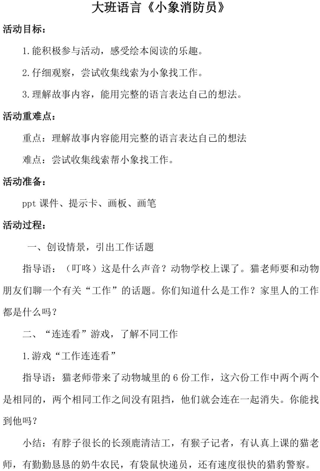 大班语言《小象消防员》