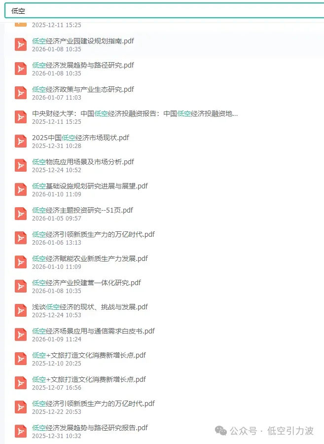 了解到很多朋友对低空经济感兴趣,我们专门创建了低空经济资料库知识星球平台,上面已经上传了上千份的学习资料,各种政策研报,专家课件等等,助力大家在低空经济赛道上游刃有余的成长。大家可以通过资料目录,看看有没有自己需要的学习文件。这是全网低空经济资料最多的平台。