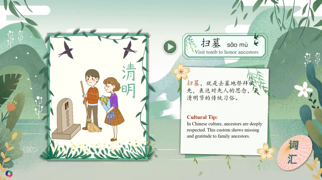 时隔五年,汉语圈结合对外汉语教学的实际需求,在经典 2021 版的基础上深度打磨、全面升级,推出清明节文化教学课件 2026 版!2026 版课件针对外国学习者的文化背景和汉语认知特点进行了优化,解决了原版教学中可能遇到的文化理解门槛、语言适配不足、内容拓展有限等问题,让清明文化教学更贴合课堂实际。