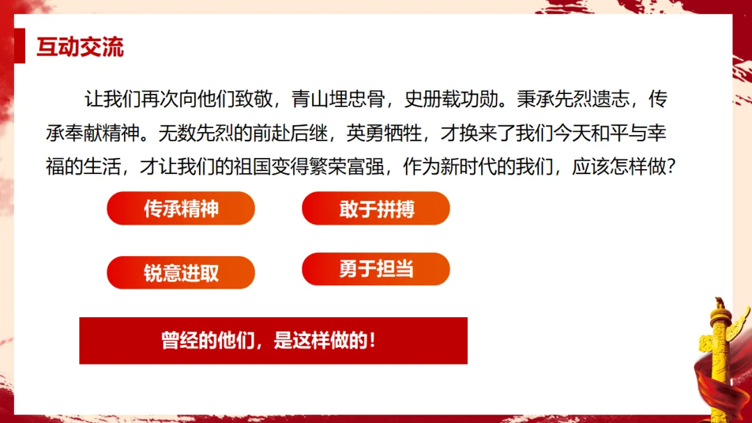 清明节主题班会ppt课件:缅怀英烈致敬英雄,传承红色爱国基因,勇担时代使命(附36页ppt)
