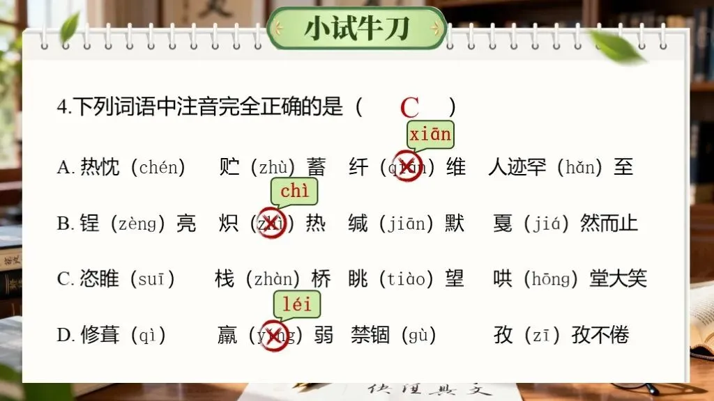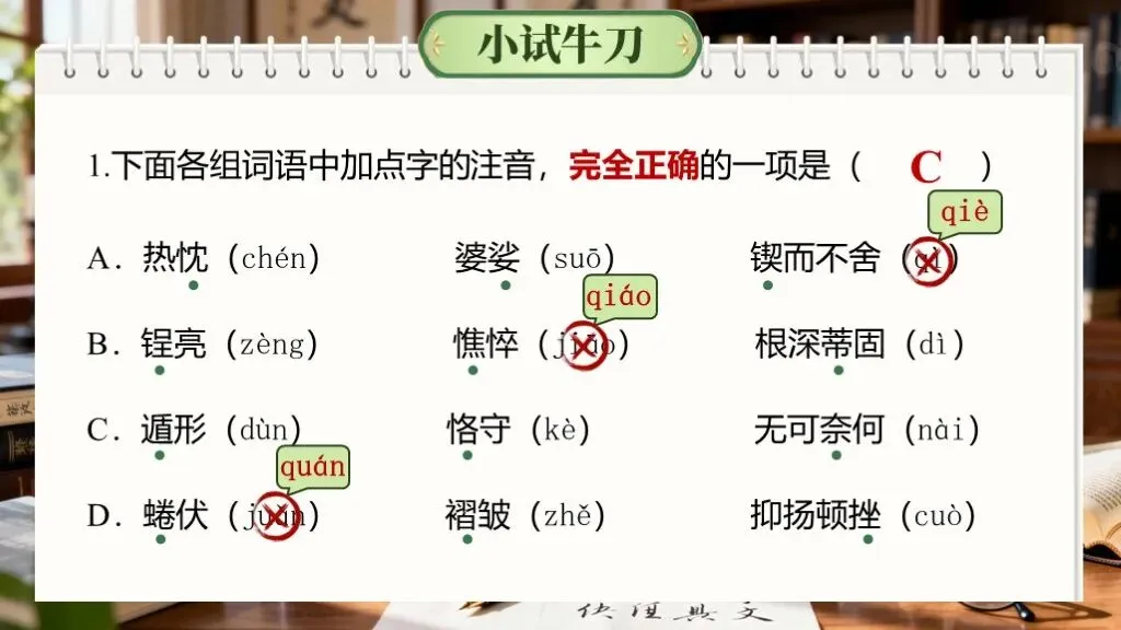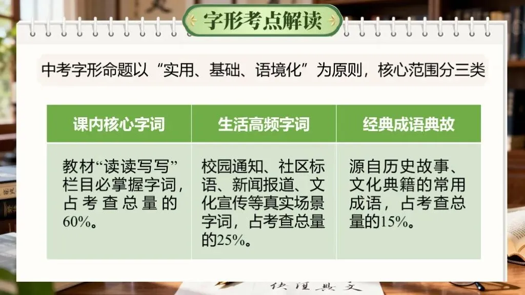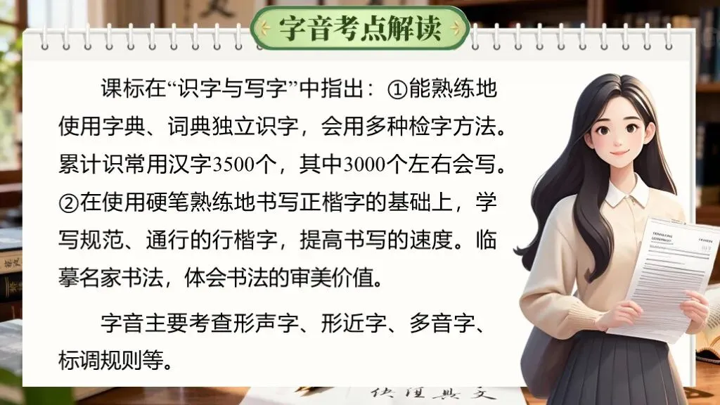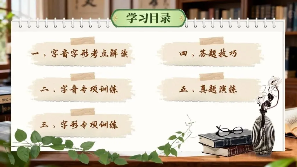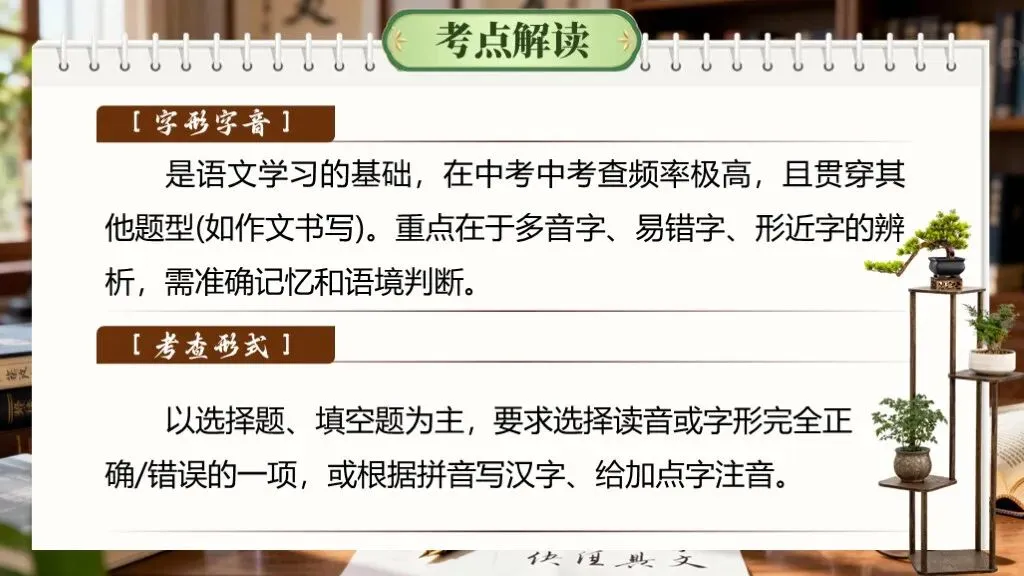 字音字形是语文学习的基础,在中考中考查频率极高,且贯穿其他题型(如作文书写)。重点在于多音字、易错字、形近字的辨析,需准确记忆和语境判断。