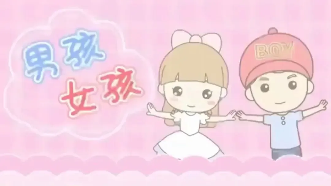 4.欣赏儿歌《男孩女孩》,让幼儿进一步了解男孩女孩着装、发型以及喜欢的玩具的不同。