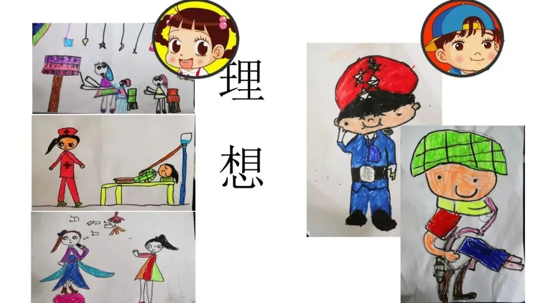 分别出示班里男孩女孩画的自己喜欢的活动区和长大后的理想图片,请幼儿猜猜哪是男孩的哪是女孩的,通过形象的图片观察和感知男孩女孩喜欢的活动区和长大后的理想的差异。