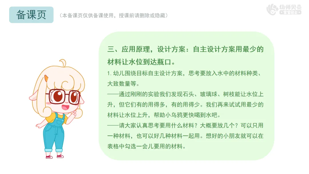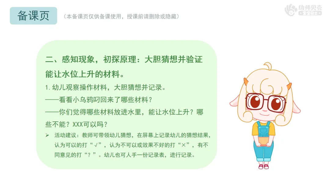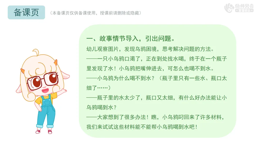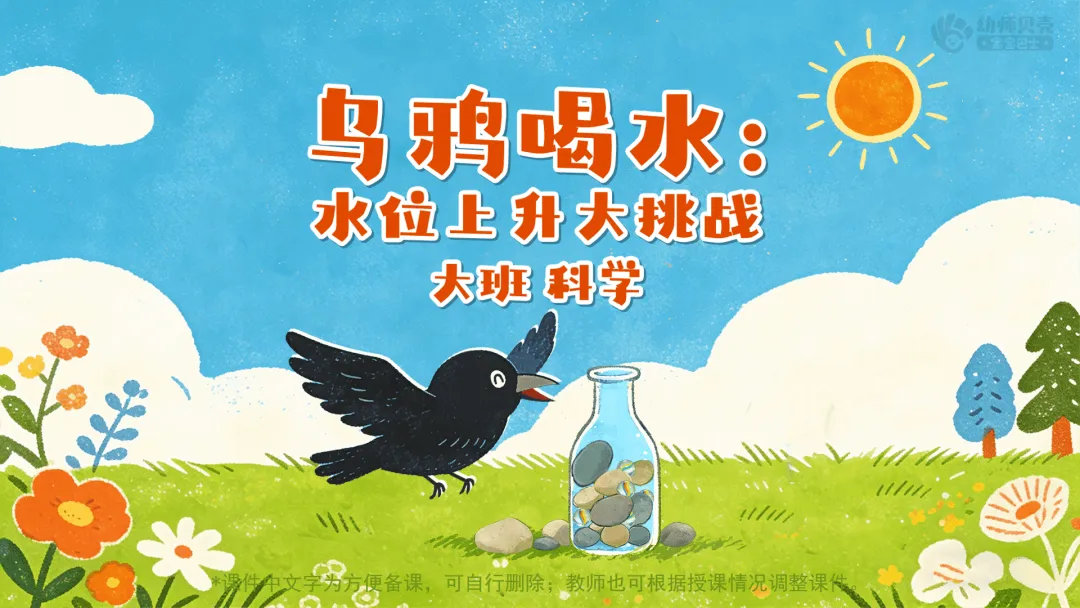 l课件准备:《乌鸦喝水:水位上升大挑战》PPT。