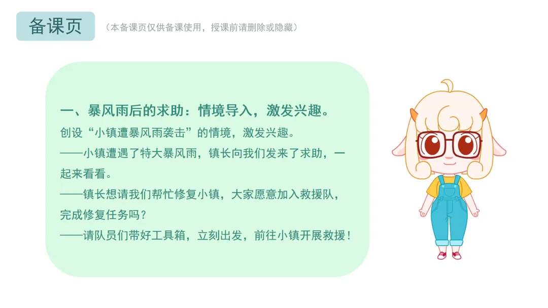 创设“小镇遭暴风雨袭击”的情境,激发兴趣。