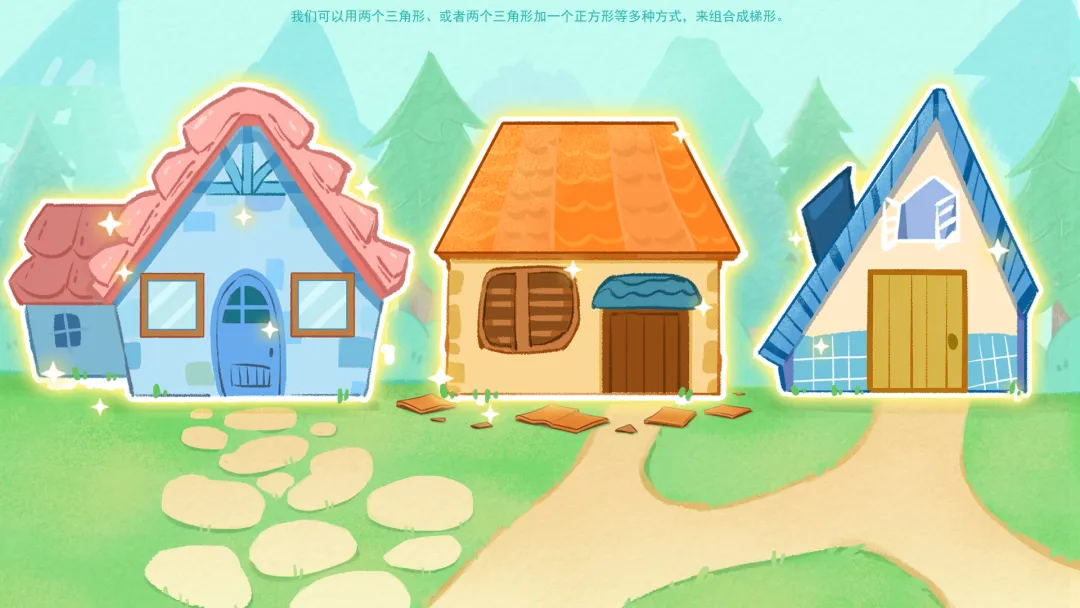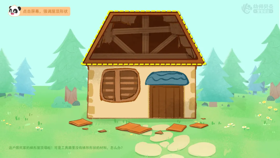 ——这户居民家的梯形屋顶塌啦!可是工具箱里没有梯形形状的材料,怎么办?
