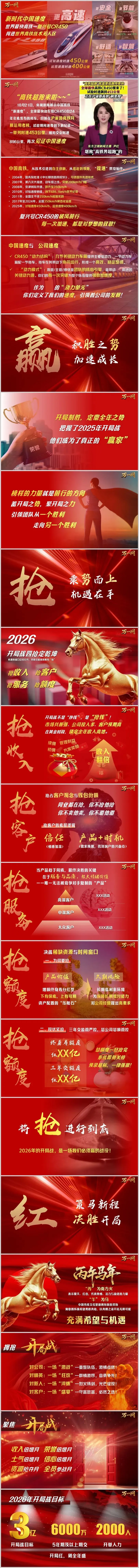 而在商业战场,2026年开局战正以同样的“速度逻辑”展开——市场共振强、公司投入多、客户预期高,这是必须抓住的“黄金时段”;抢收入、抢客户、抢服务、抢额度的“四抢定乾坤”,是企业从“追业绩”到“领赛道”的关键一跃。正如CR450的每一次加速都是对梦想的致敬,开局战的每一次“抢”,都是对企业发展加速度的赋能。