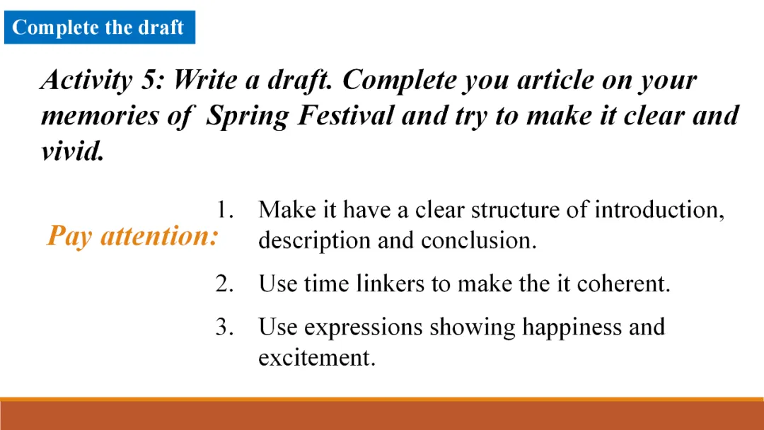 现场授课课件:北师大版必修第一册 Unit 3 Writing Workshop (河南 贾金欢)