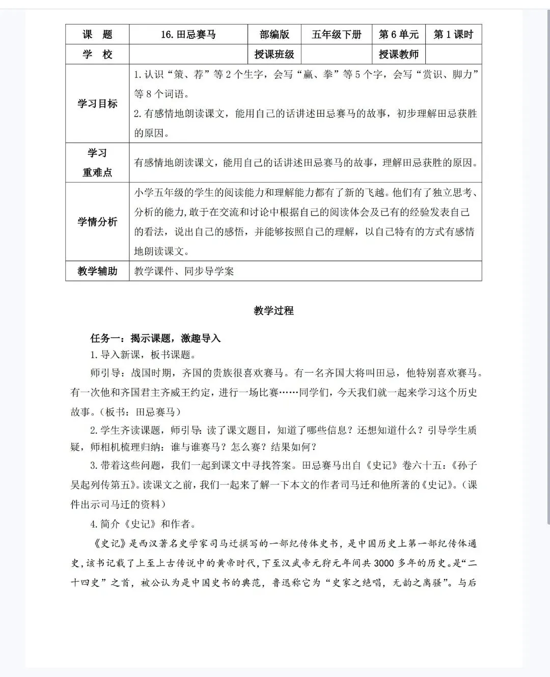 【新课标精品课件】五年级下《 6.16田忌赛马》课件+教案+分层作业+学习任务单