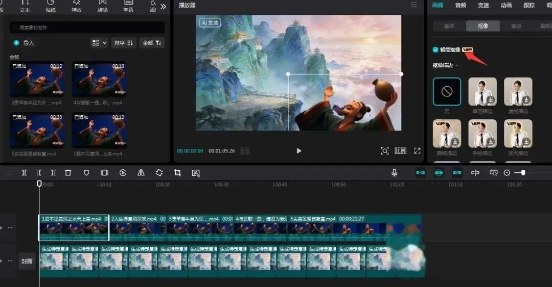 选中数字人,使用智能抠像去掉背景,调整好人物的大小和位置。