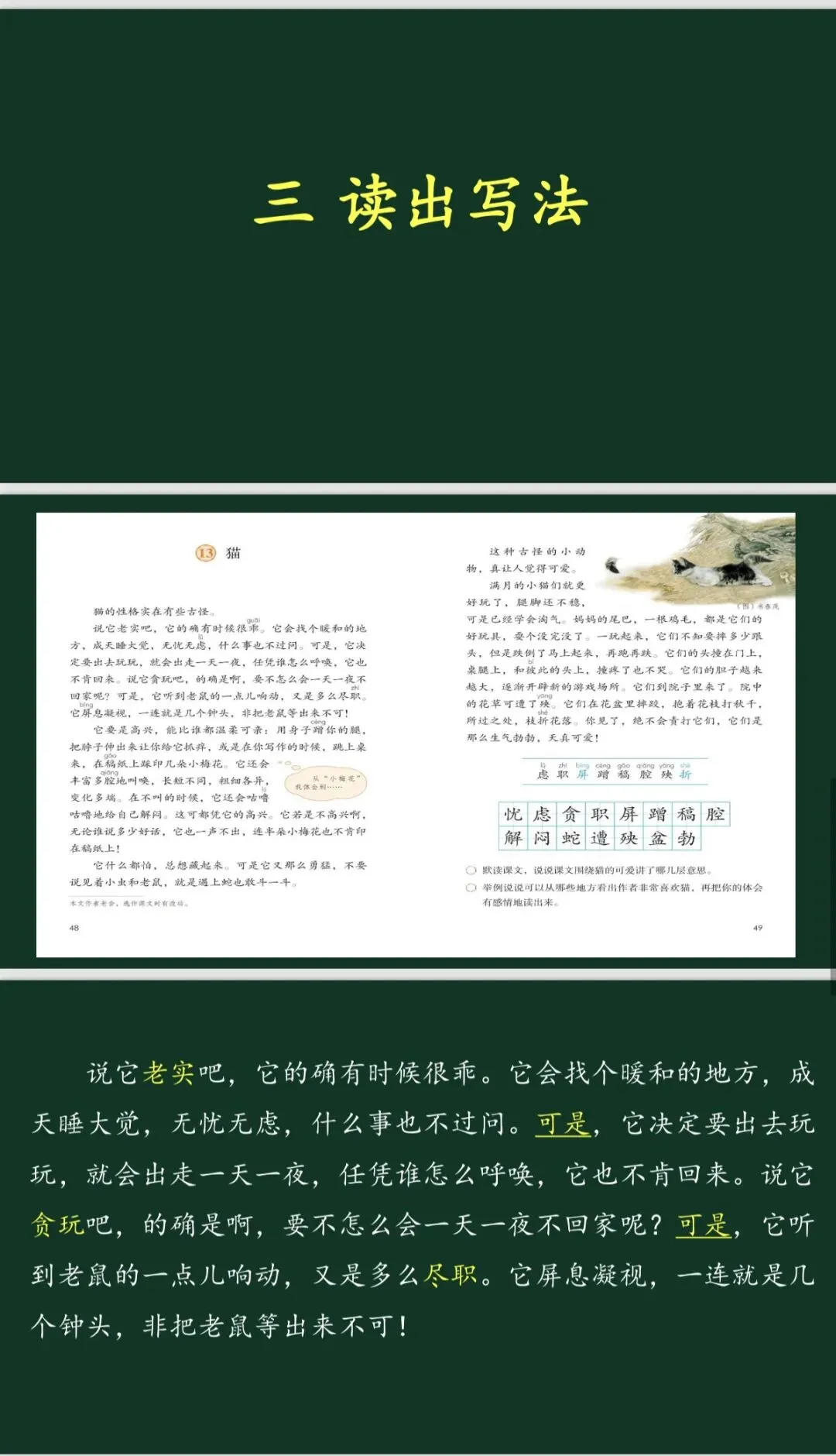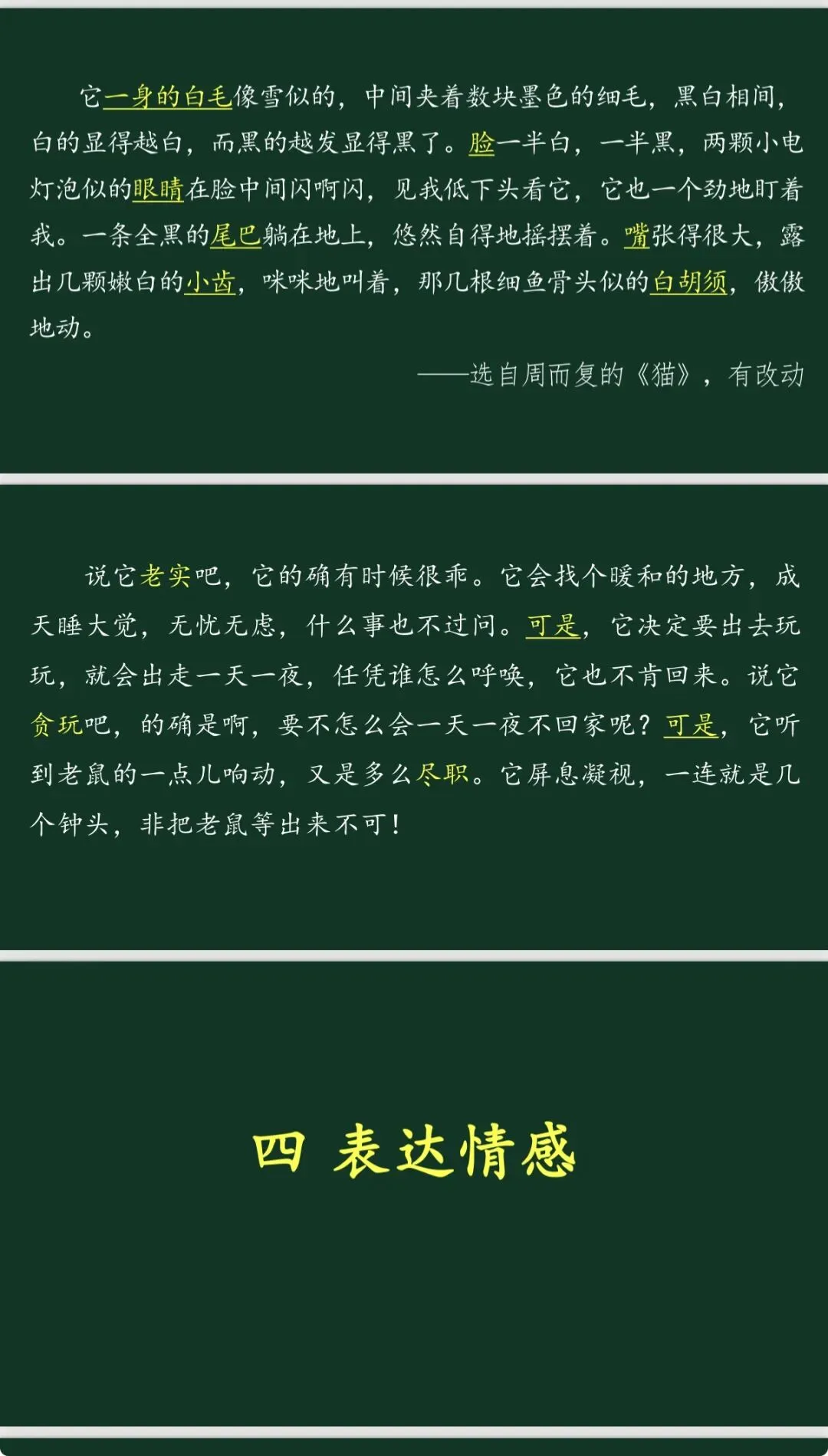 ✔️读出情感——老舍笔下的猫的喜爱与赞美。