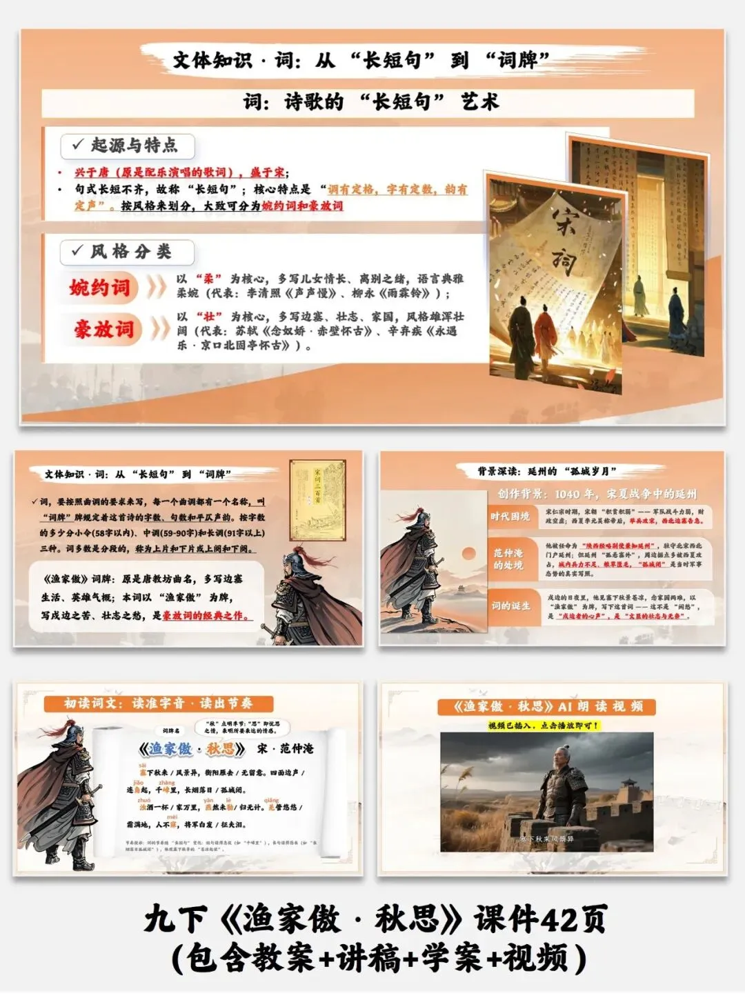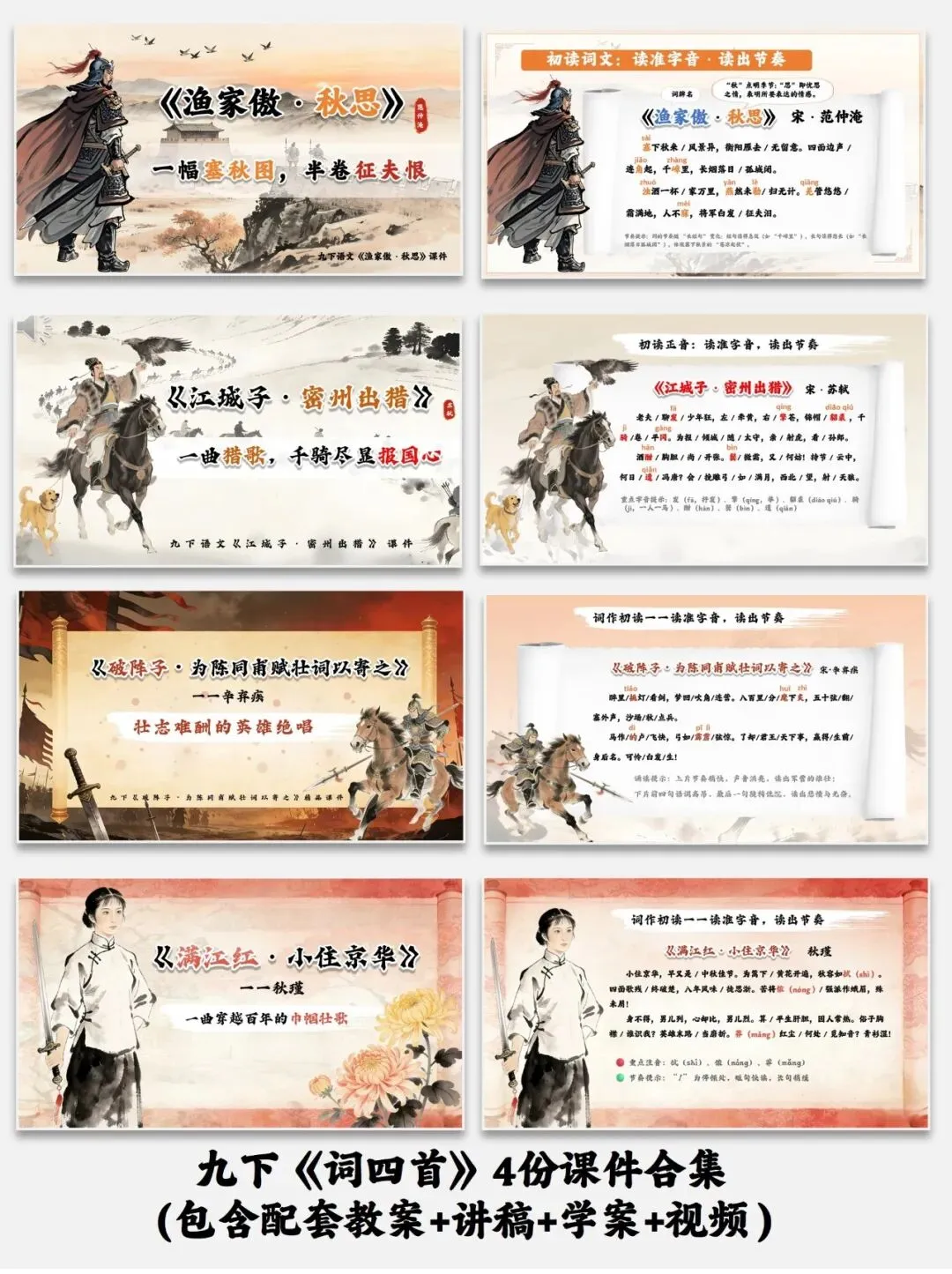 编号【228-12】九下《词四首》4份课件合集(包含配套教案+讲稿+学案+视频)