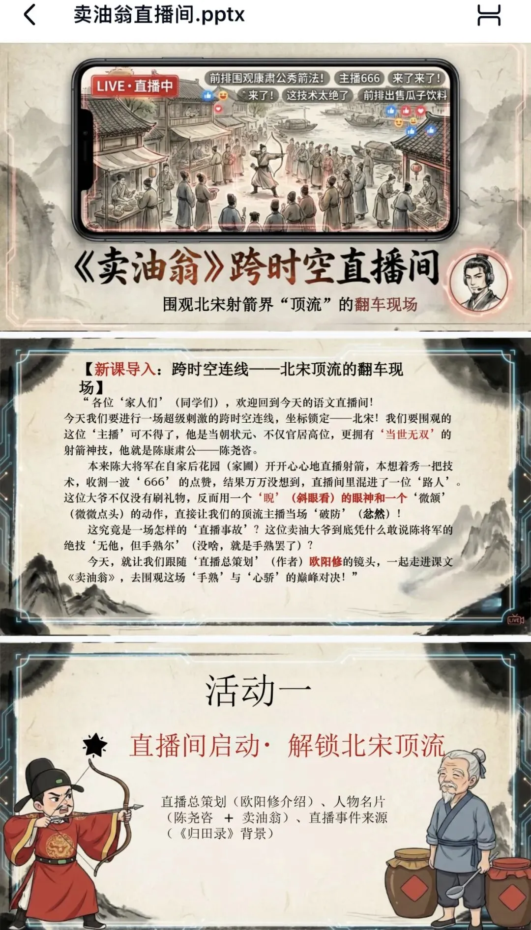 >七下语文《卖油翁》AI赋能课件跨时空直播间
