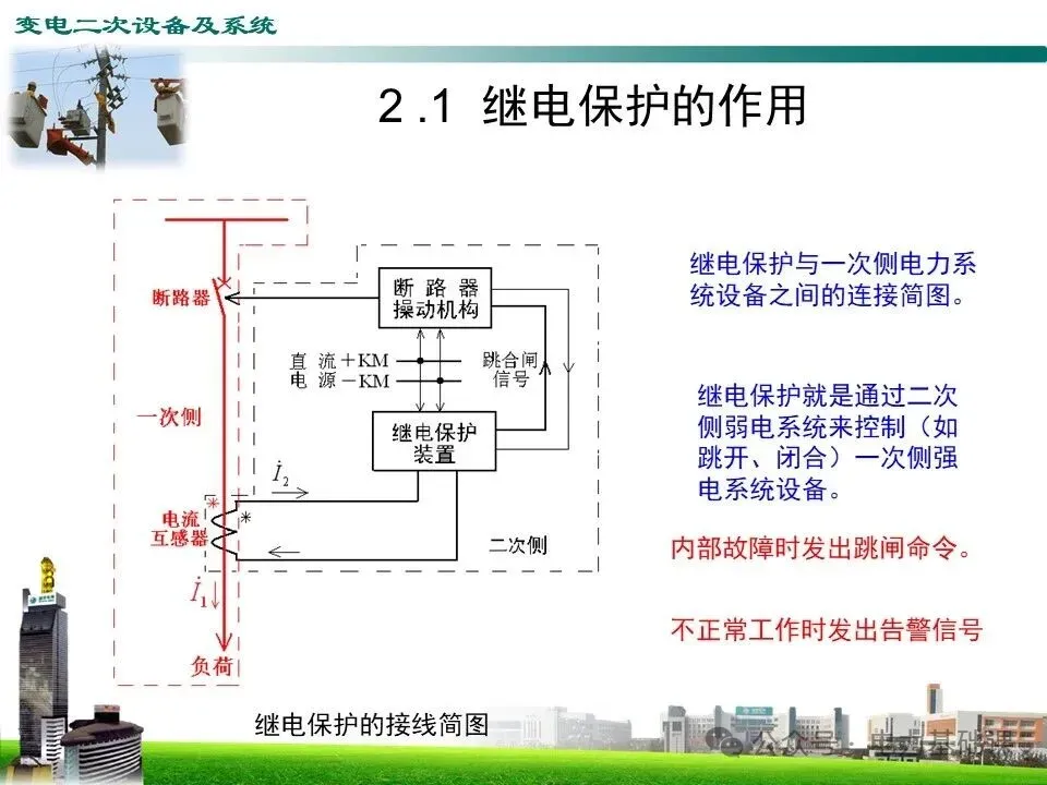 继电保护就是通过二次侧弱电系统来控制(如跳开、闭合)一次侧强电系统设备。
