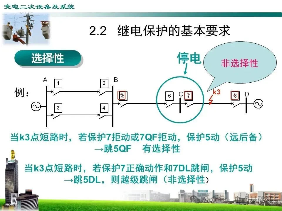 当k3点短路时,若保护7拒动或7QF拒动,保护5动(远后备)