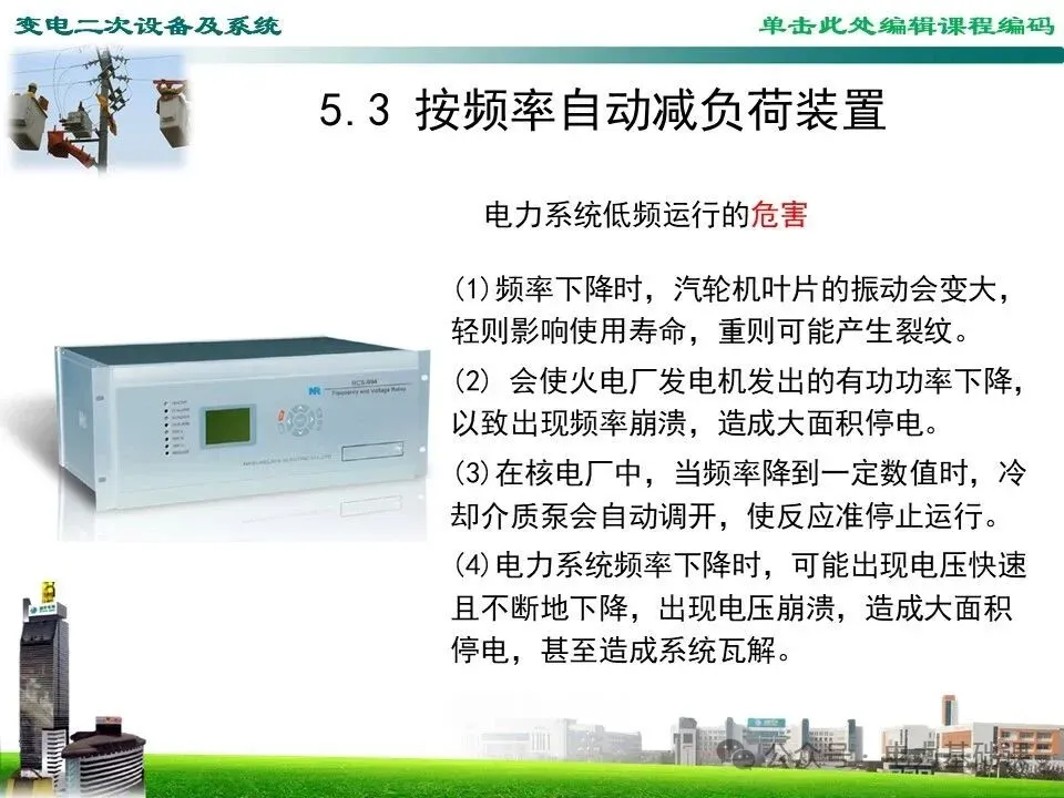 (4)电力系统频率下降时,可能出现电压快速且不断地下降,出现电压崩溃,造成大面积停电,甚至造成系统瓦解。