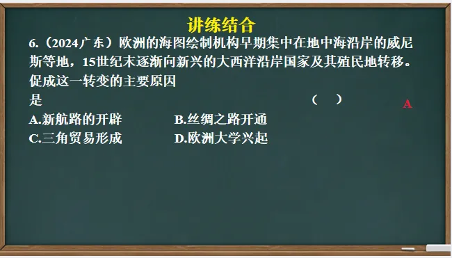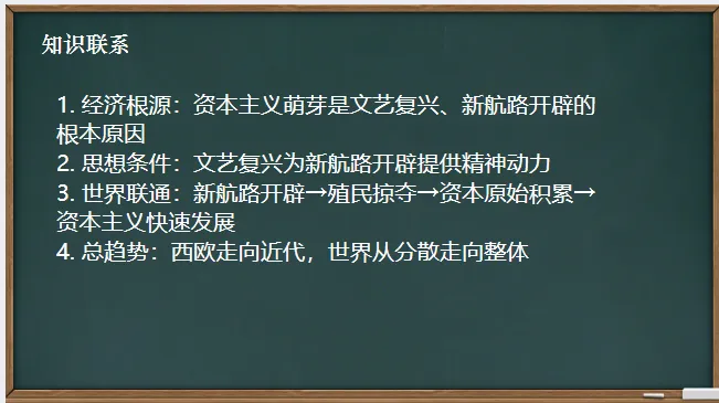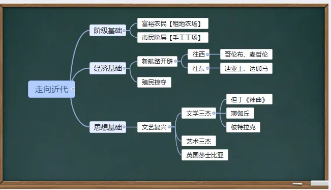 世界近代史,从本主题开始,分析世界走向近代的铺垫,如阶级基础、经济基础、思想基础等。其包含的内容,“文艺复兴、新航路开辟”是常考内容,加强理解,重点分析,讲练结合,便可巩固。