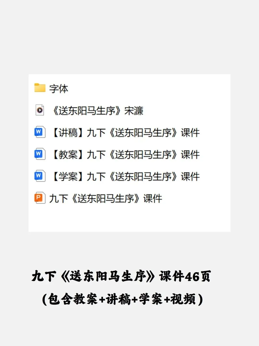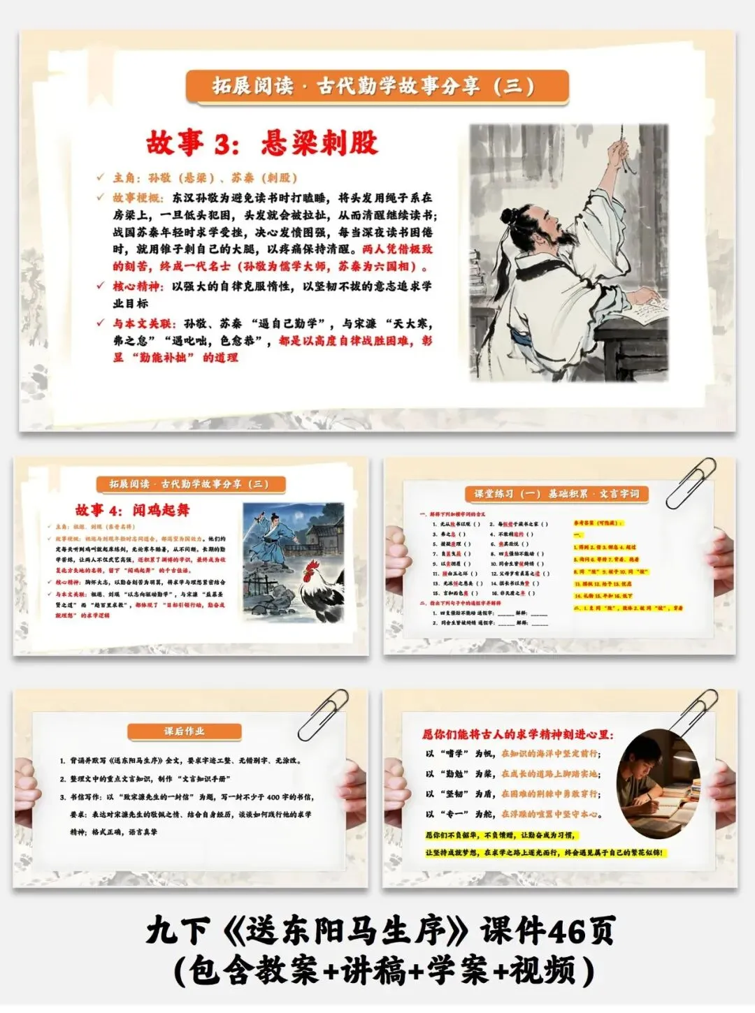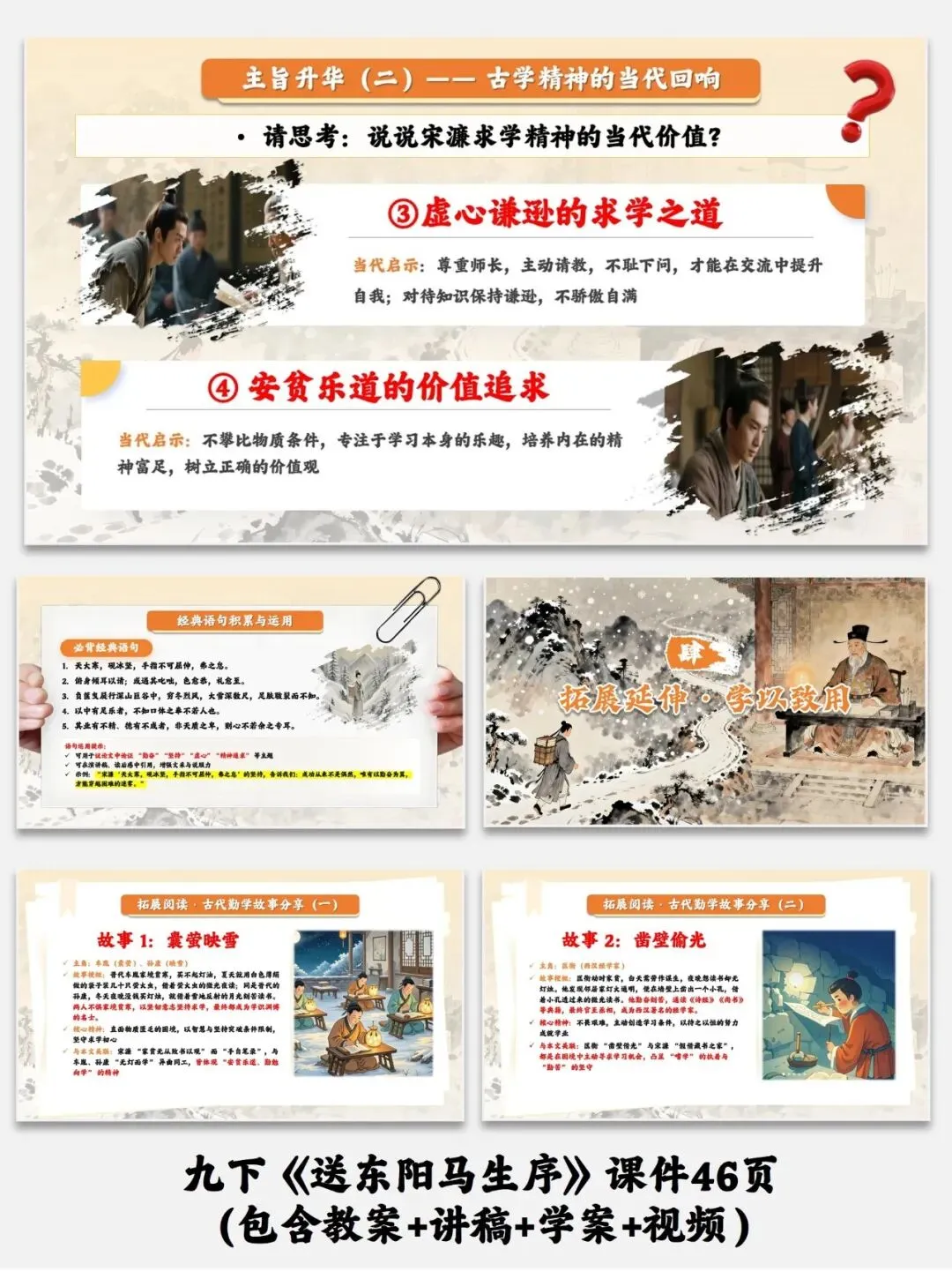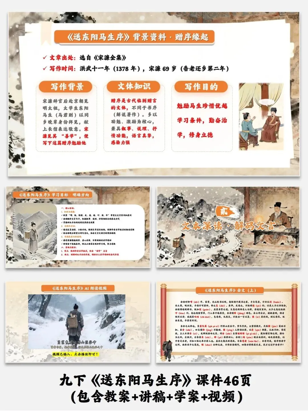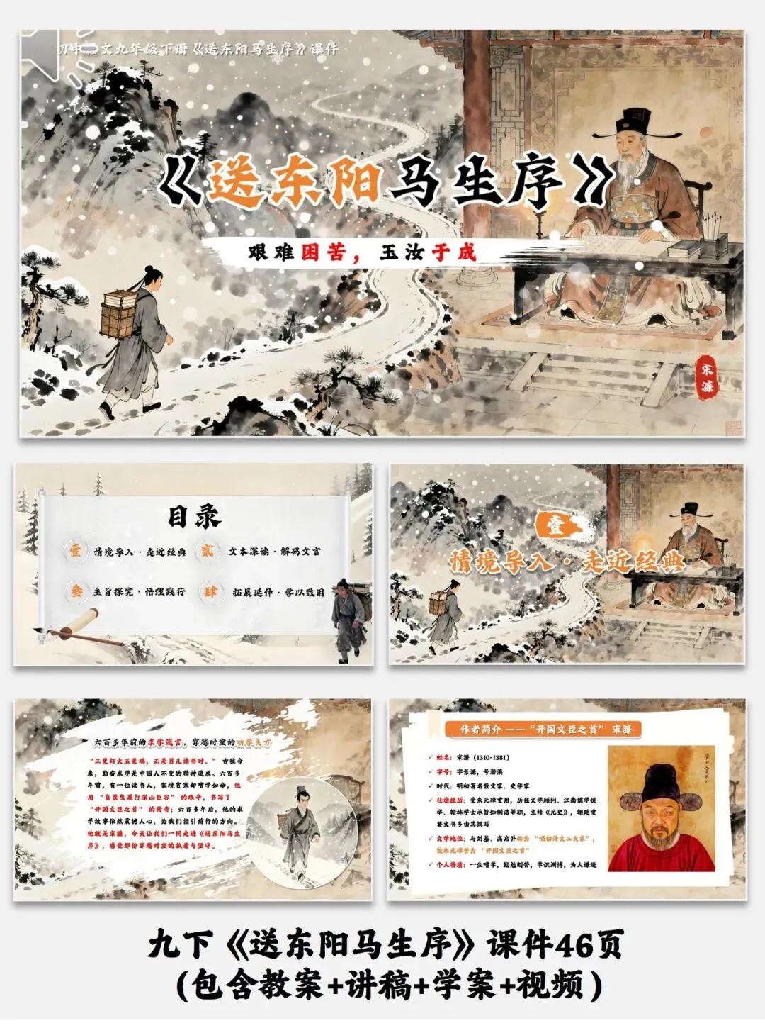 编号【228-6】九下《送东阳马生序》课件46页(包含教案+讲稿+学案+视频)