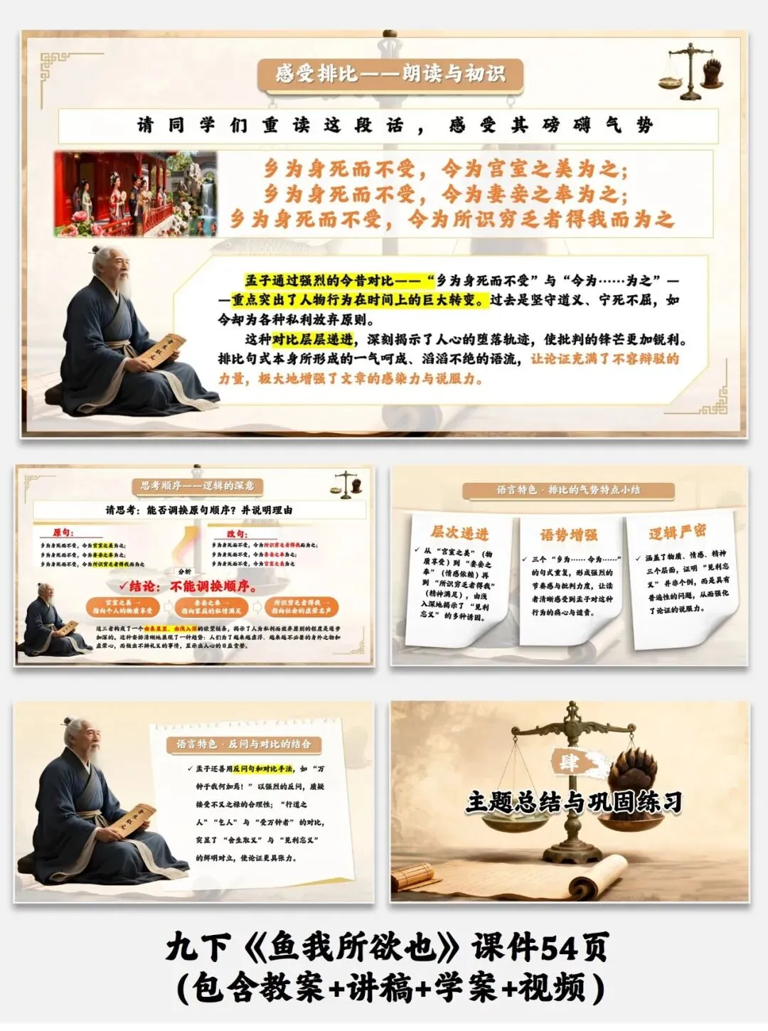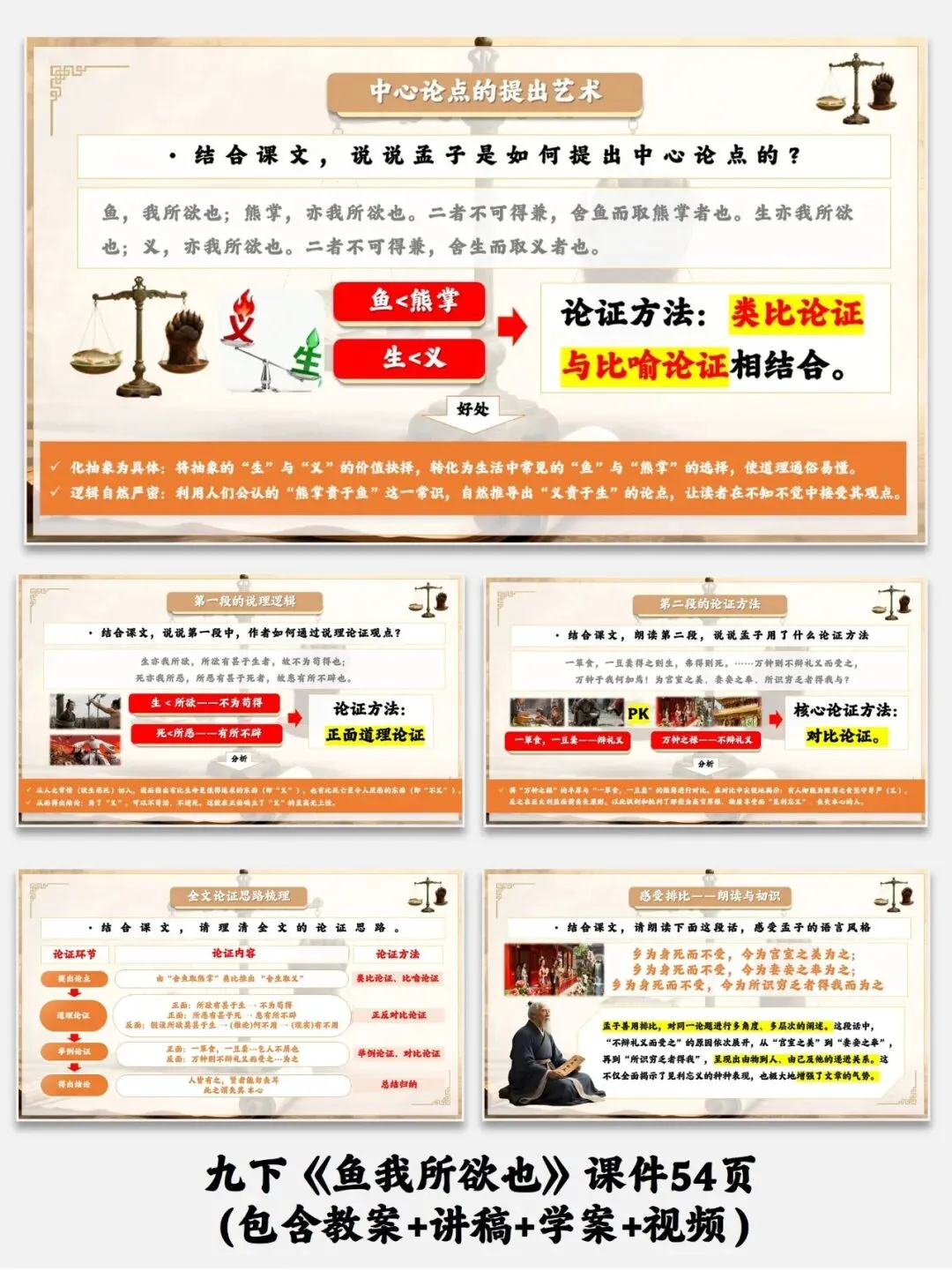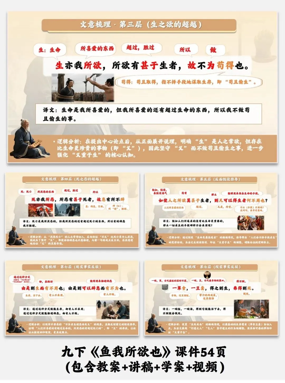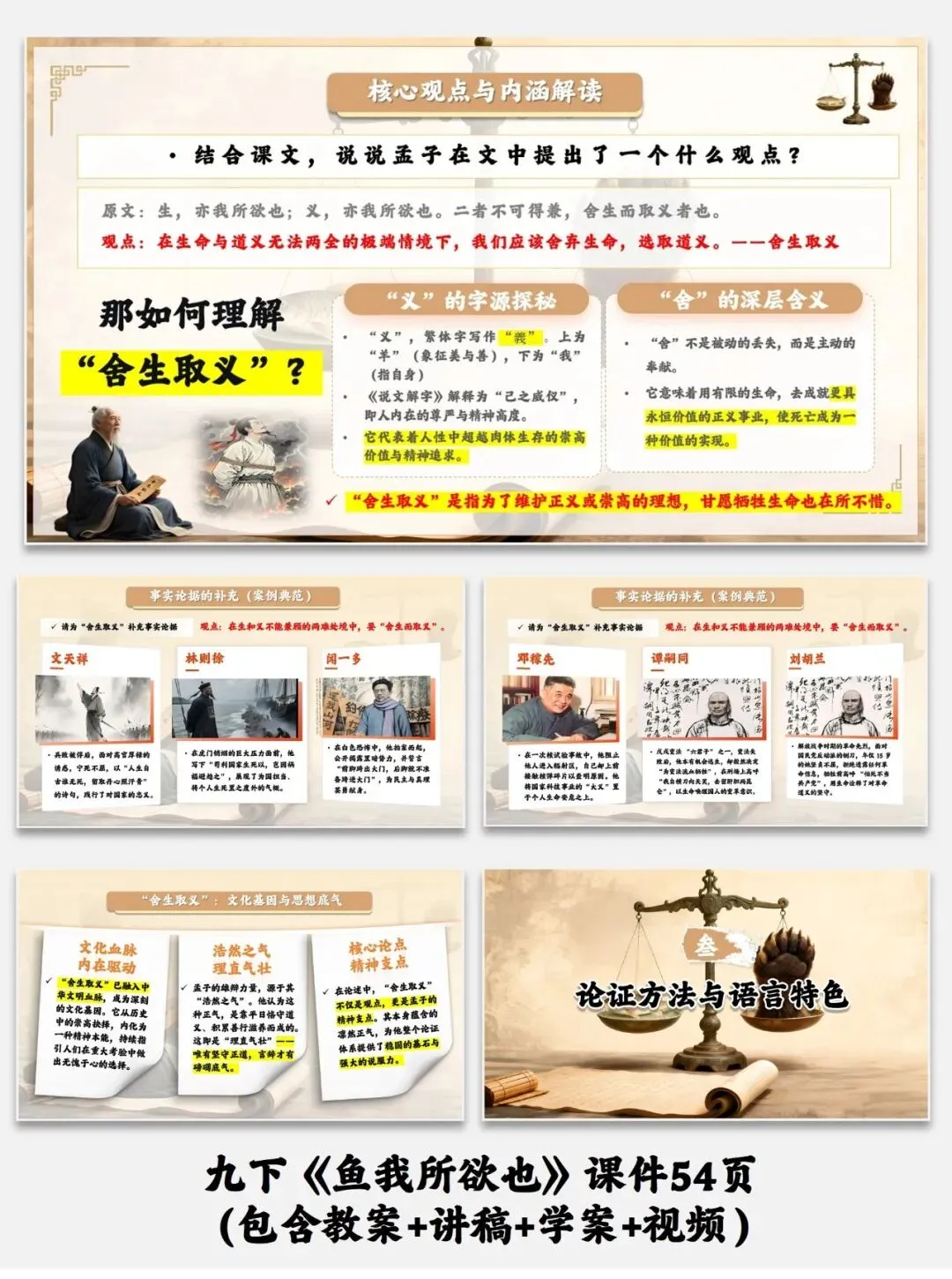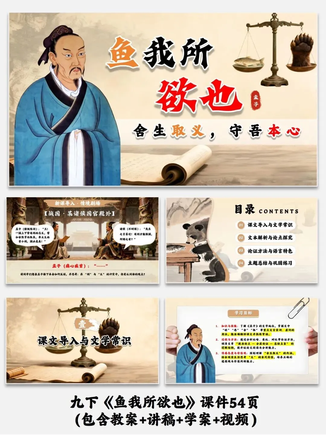 编号【228-5】九下《鱼我所欲也》课件54页(包含教案+讲稿+学案+视频)