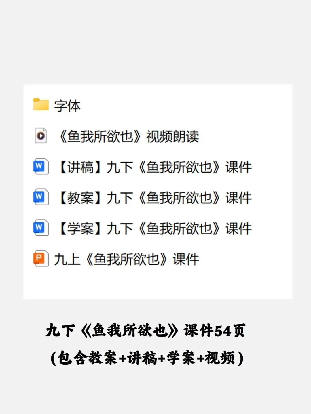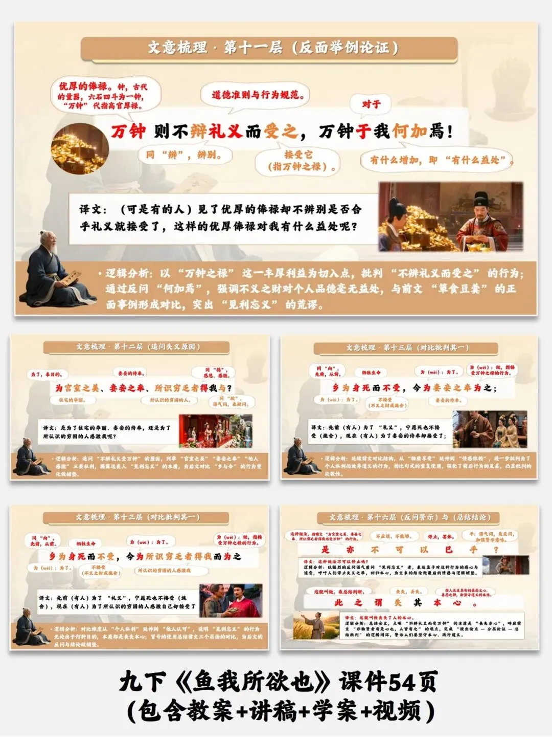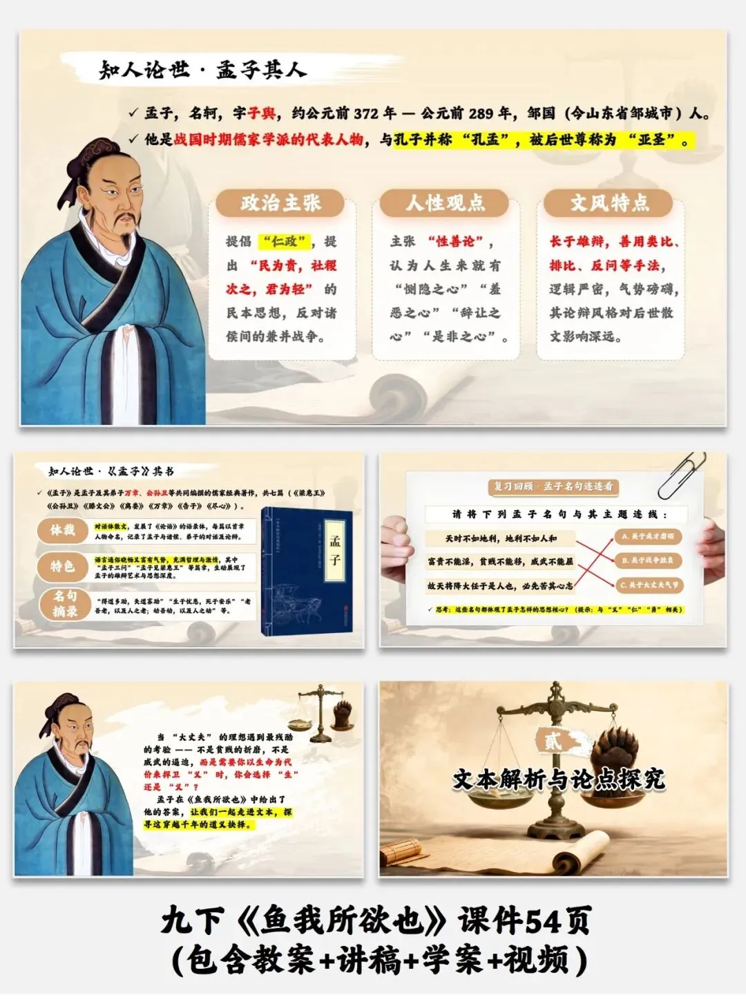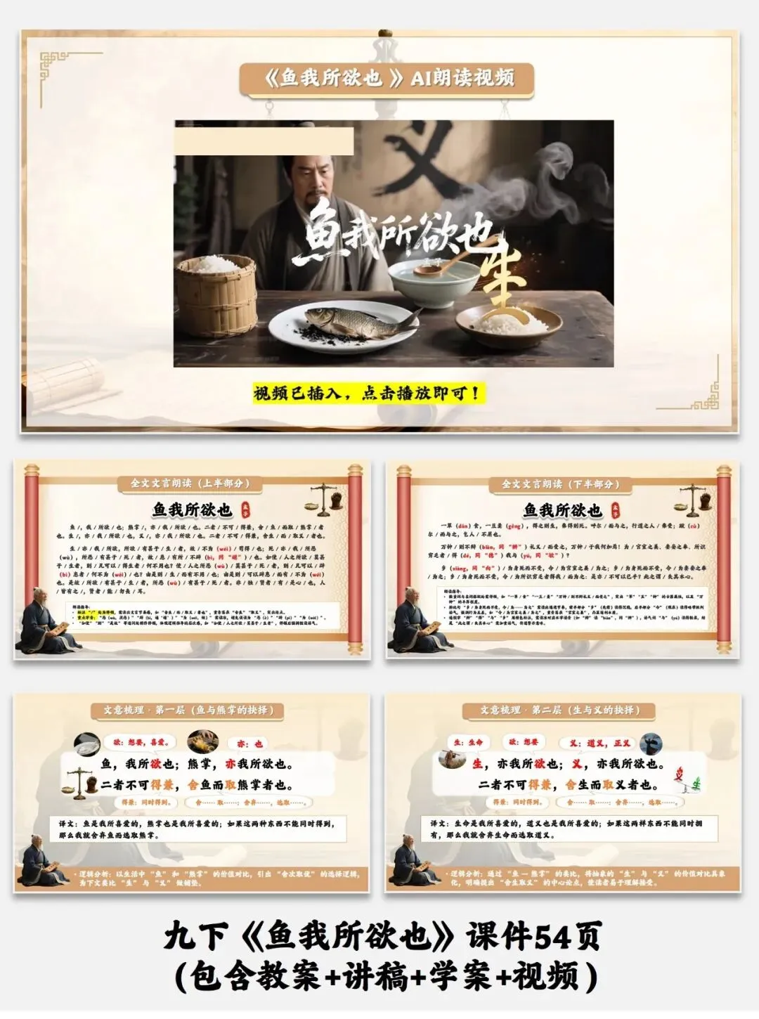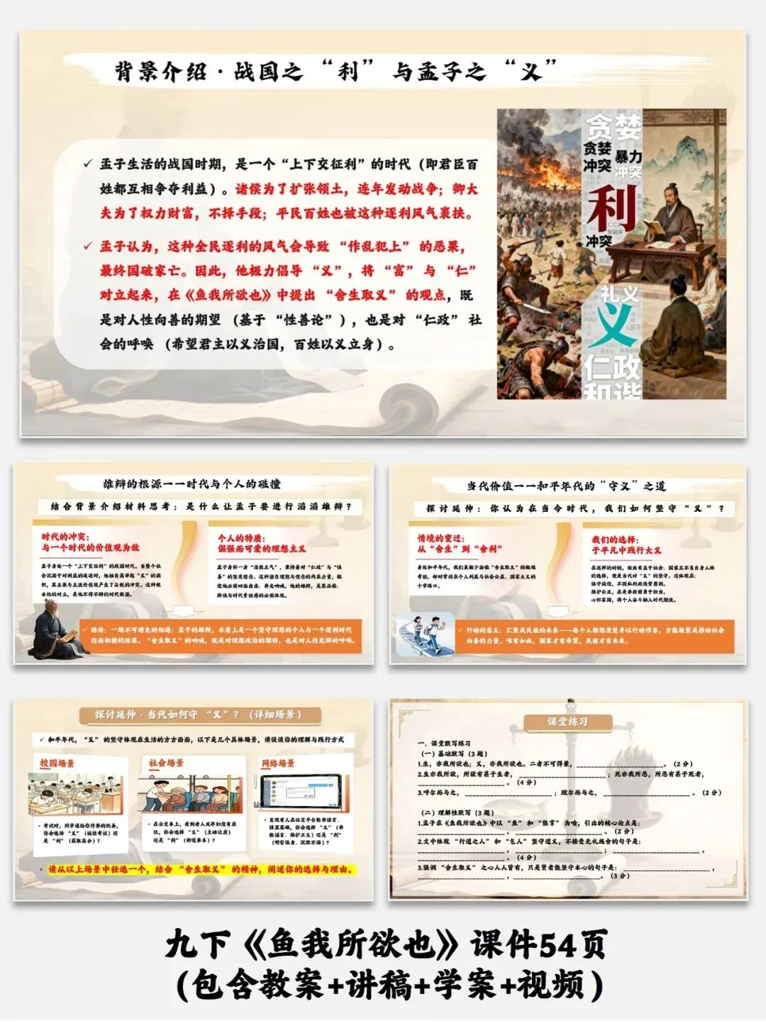 编号【228-5】九下《鱼我所欲也》课件54页(包含教案+讲稿+学案+视频)