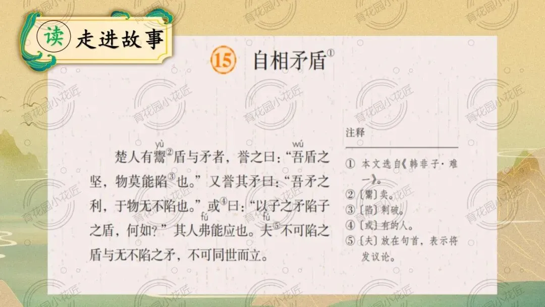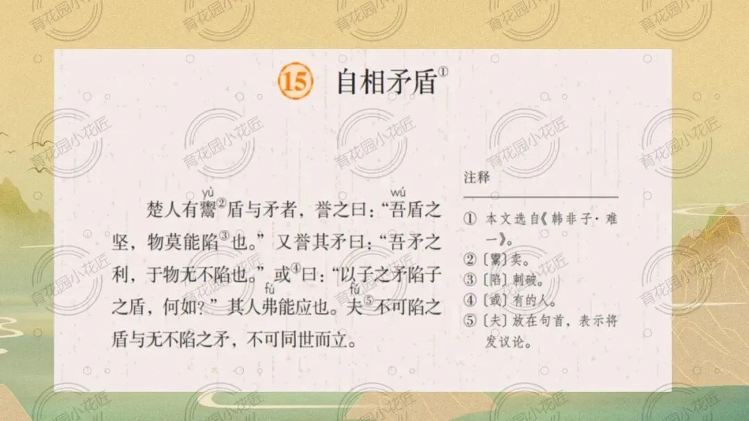 资源为语文五年级下册第15课《自相矛盾》的公开课,包含课件(35页)、逐字稿、教学设计、课堂实录,一个课时,可编辑,无水印,资源为临沂市小学优质课评比活动课例。