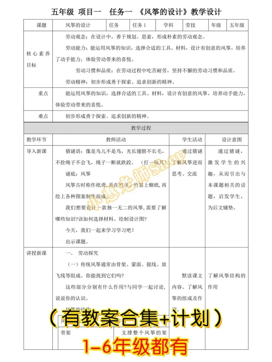 劳动教案+课件+计划