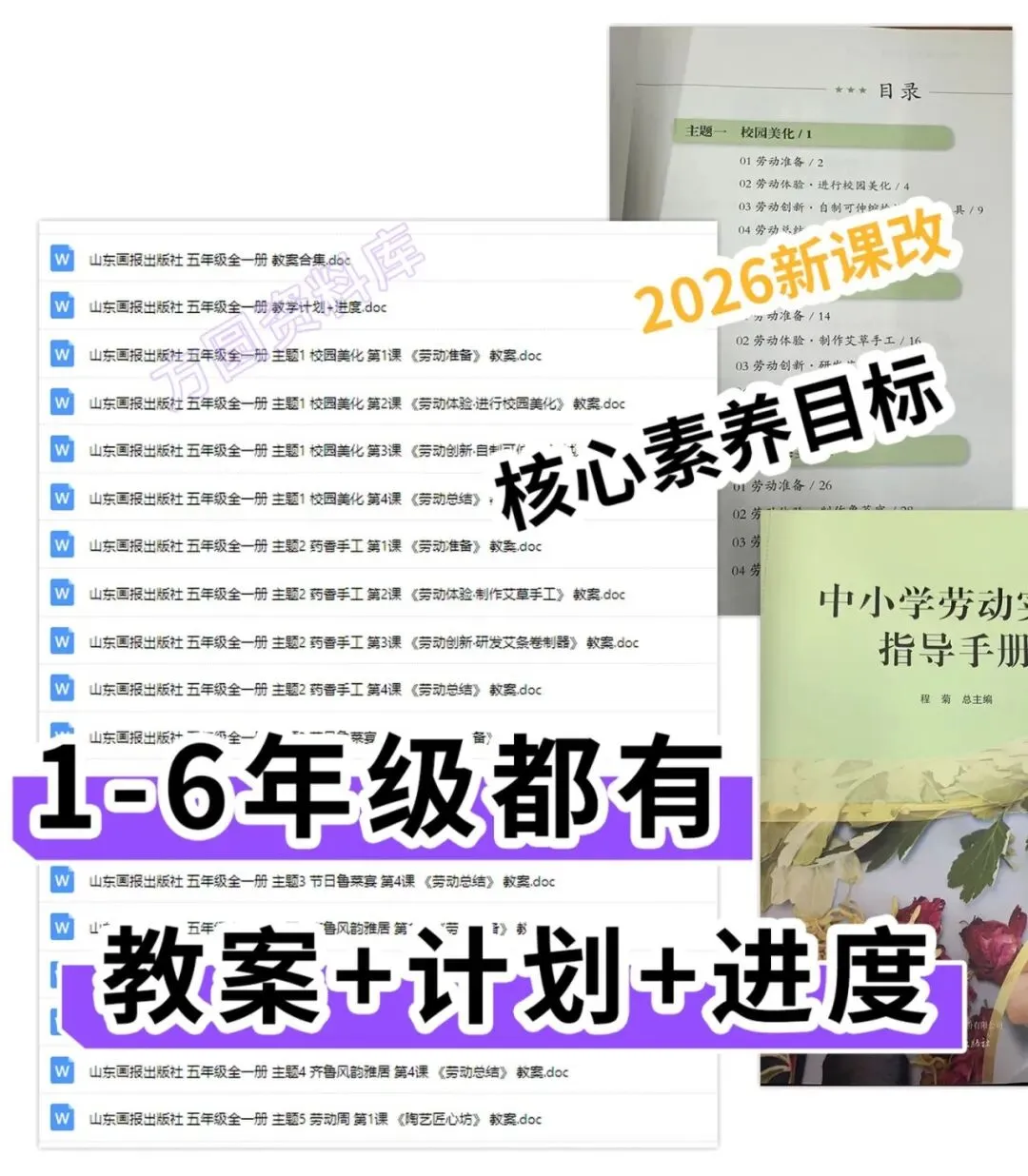 山东鲁画版 鲁教版中小学劳动实践,全册教案合集、课件PPT,计划进度。文字底部二维码打开下载。五年级主题2 药香手工