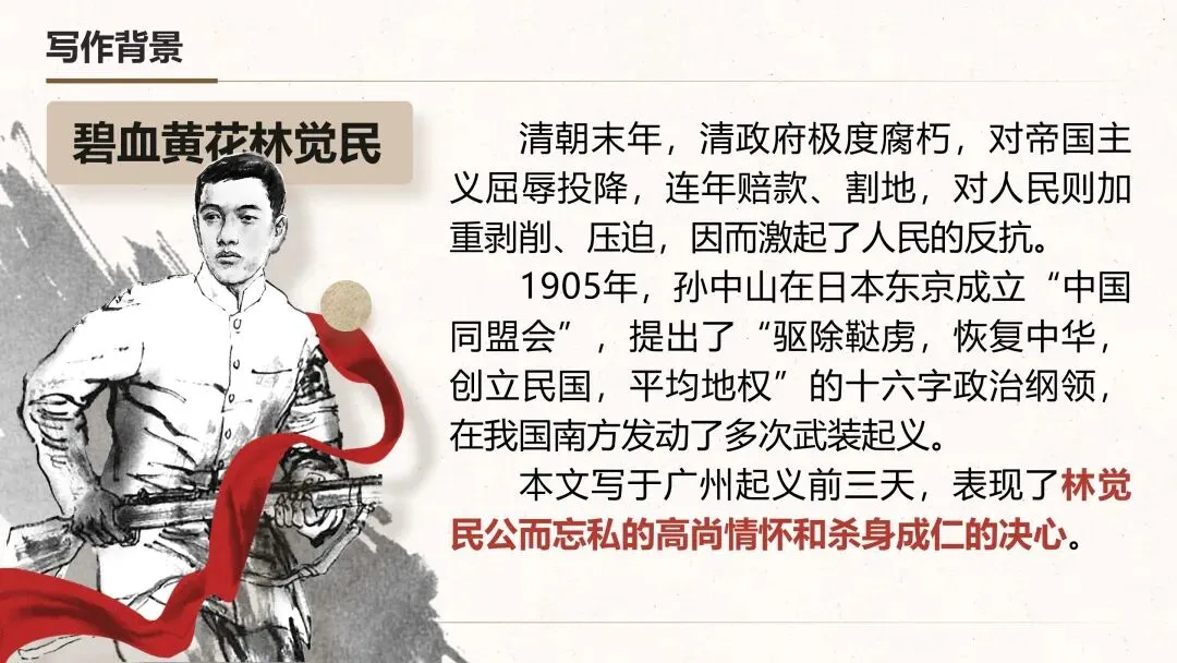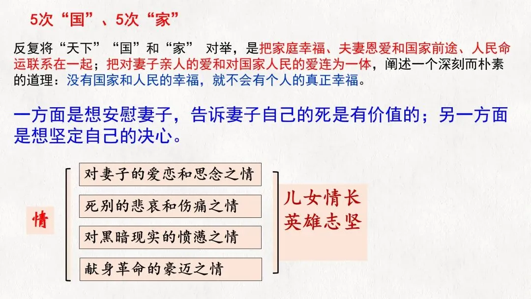 难点:理解特定历史背景下革命者的生死观,以及本文“悲喜交集、理性与感性交织”的复杂情感。
