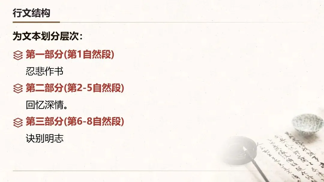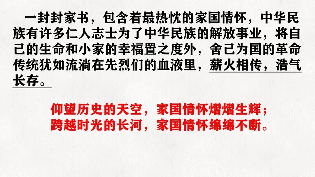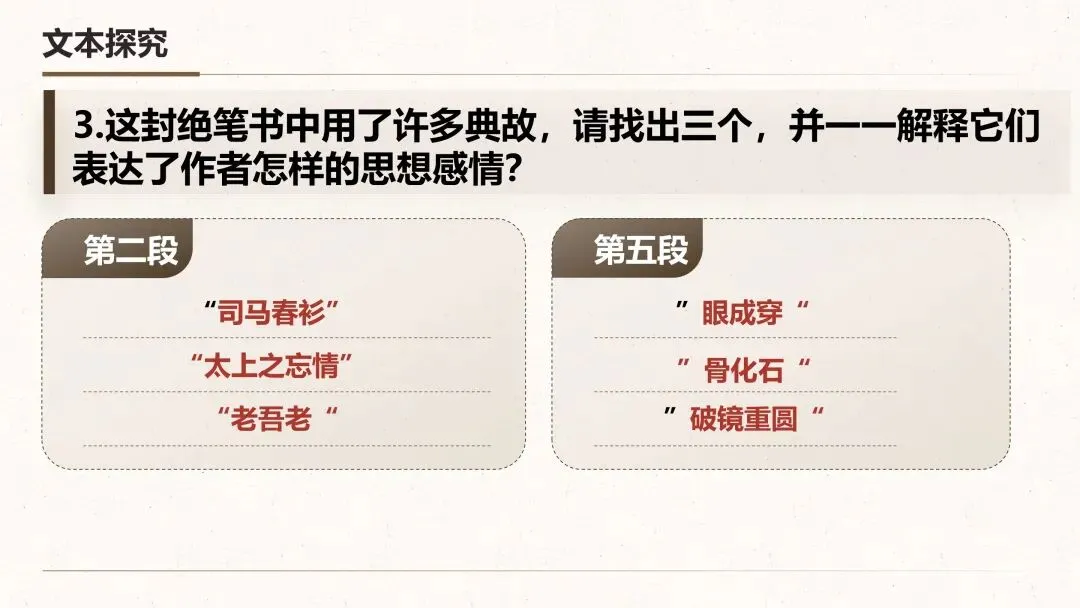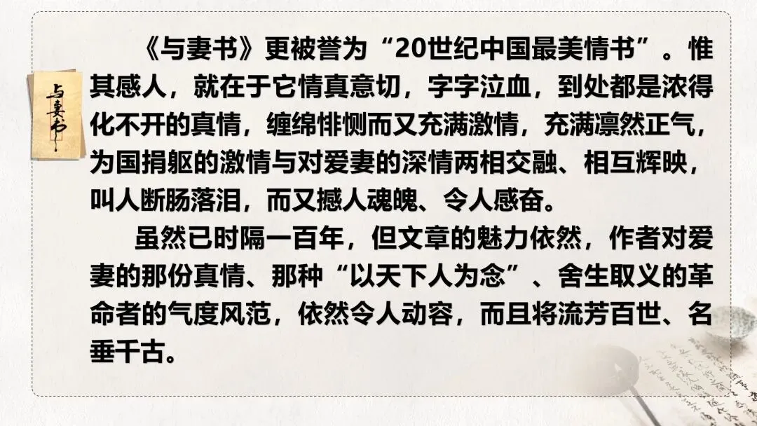 3.审美鉴赏与创造:通过诵读与细节品味,体会信中缠绵悱恻的儿女情长与慷慨激昂的英雄气概。