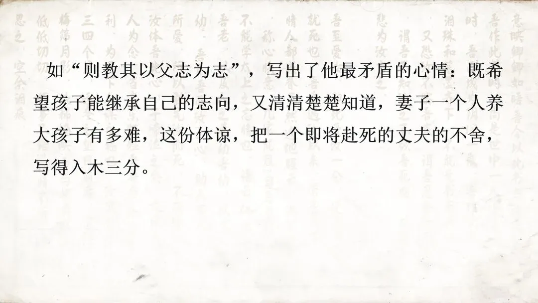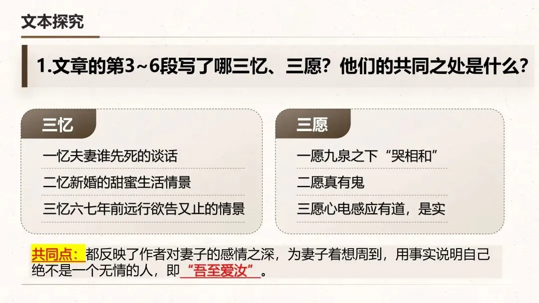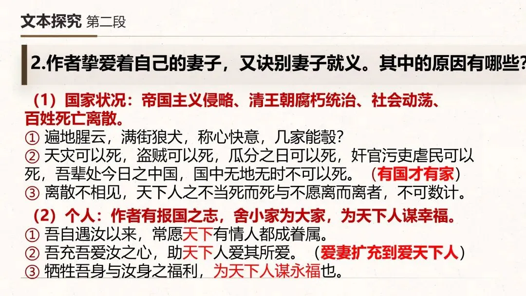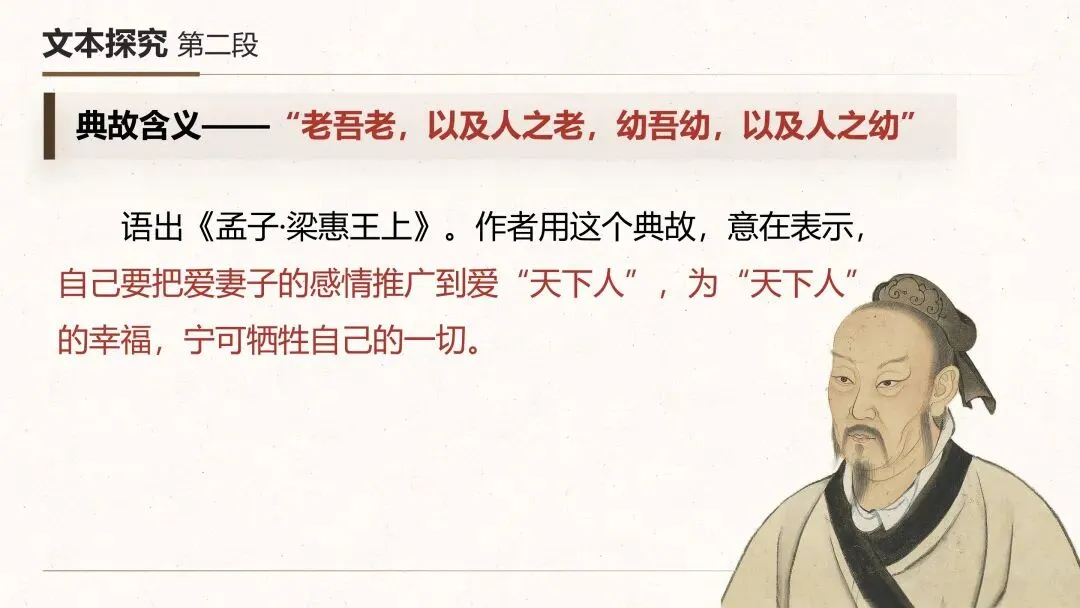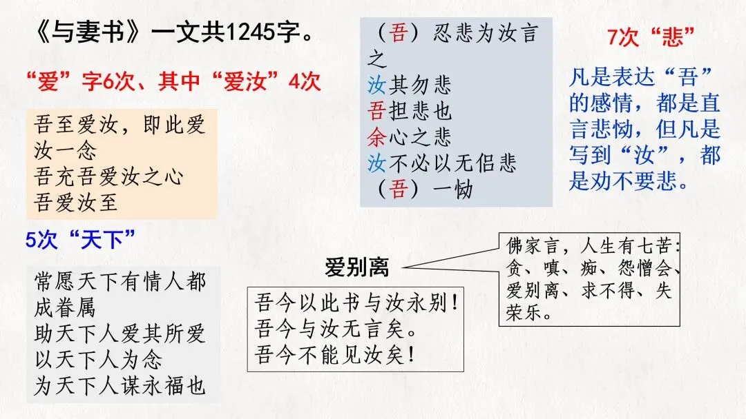 重点:体悟作者如何在“忍舍汝而死”的悲痛中,将夫妻之爱升华为对天下人的大爱。