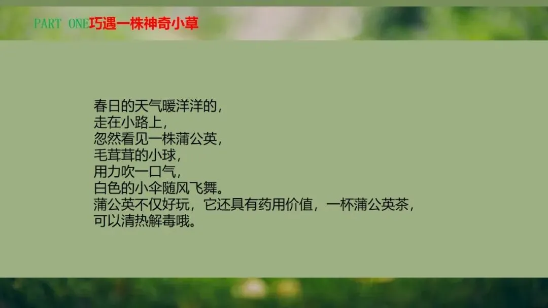 春日暖阳,孩子们在户外散步时,偶然发现了一株蒲公英。毛茸茸的小球格外有趣,用力一吹,白色小伞便随风飞舞。在观察蒲公英的过程中,我们发现它不仅好玩,还具有极高的药用价值,一杯蒲公英茶就能起到清热解毒的作用。这株偶然遇见的小草,激发了孩子们对身边草本植物的好奇心,也成为了我们本次班本课程《神奇的小草》的缘起。