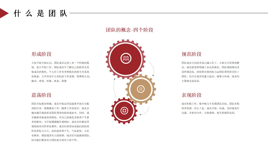 一个团队从组建到成熟,通常会经历四个阶段,了解这些阶段的特点,有助于我们更好地管理团队: