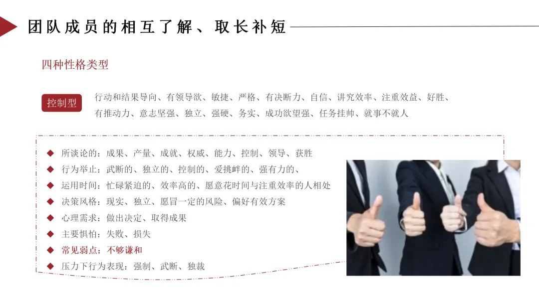 克服方法:了解团队成员的性格类型,调整自己的沟通方式以适应对方;在团队内建立多元化的沟通渠道,满足不同性格成员的需求。