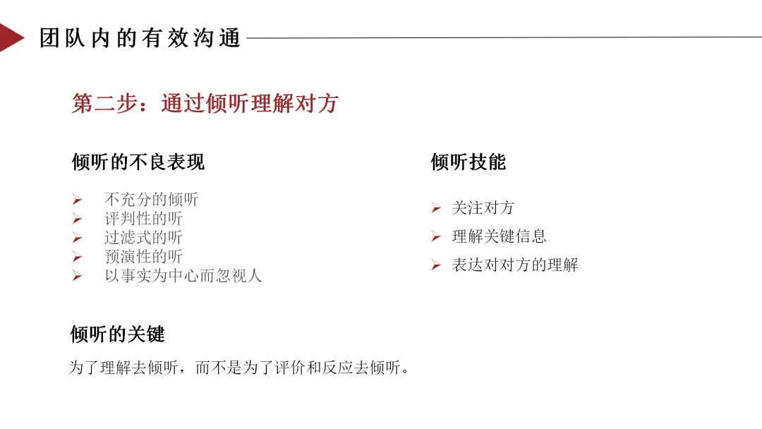 为了理解去倾听,而不是为了评价和反应去倾听。这意味着: