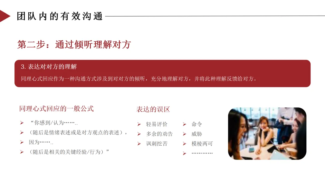 这种行为让成员感到被尊重,促进深度交流,避免误解和冲突。