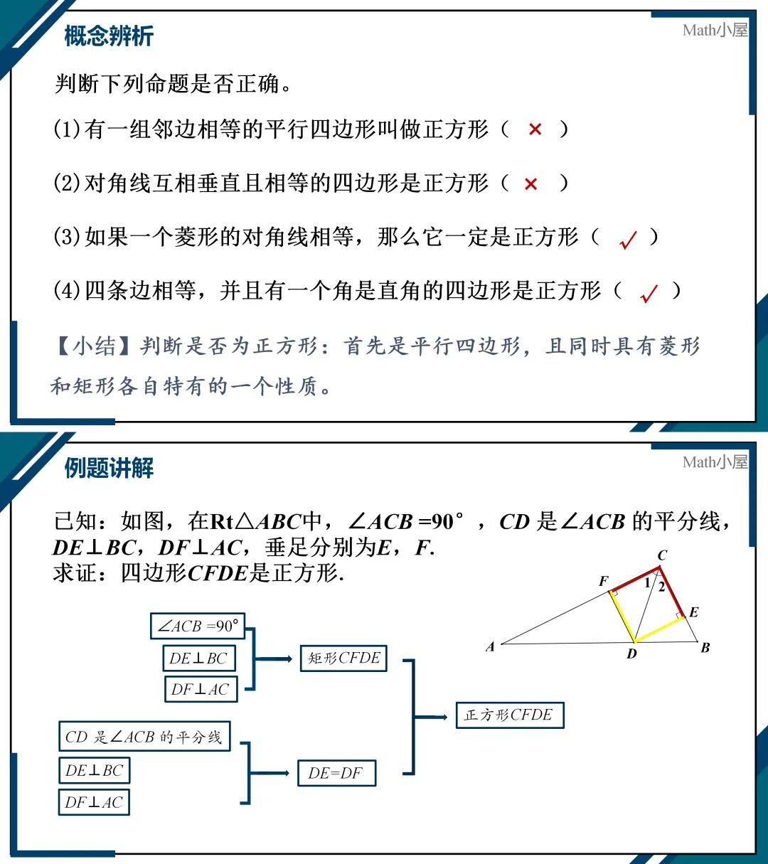 八年级下册几何重难点来啦!正方形 =矩形 + 菱形的完美合体一节课搞定定义、判定、易错点 + 例题✨