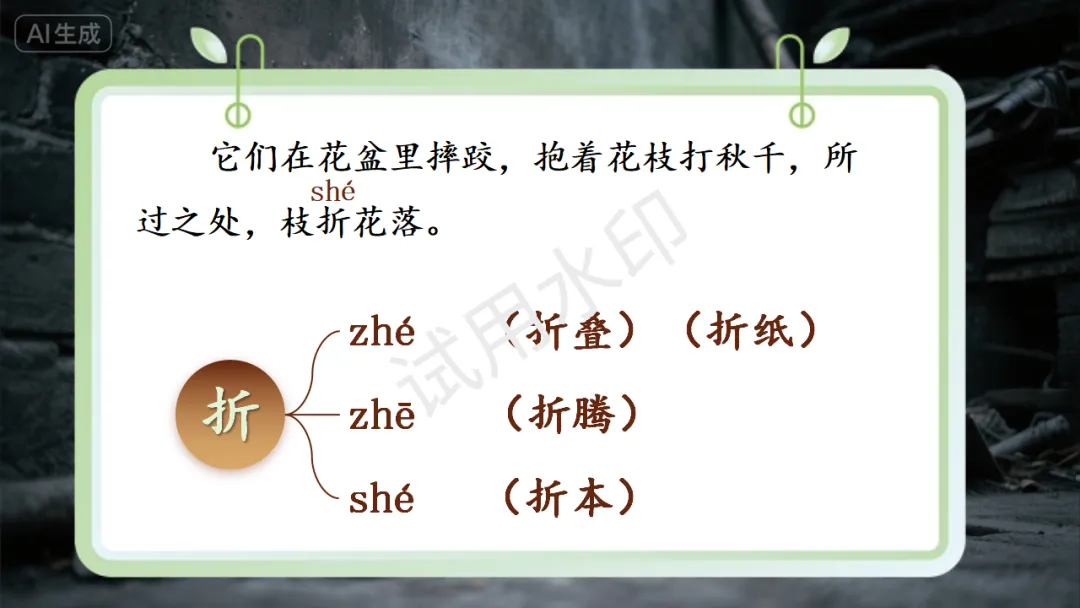 枝折shé花落、zhē折腾、zhé折磨、解闷