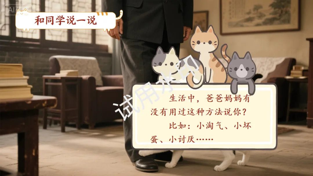 和同学说一说: 生活中,爸爸妈妈有没有用过这种方法说你?比如:小淘气、小坏蛋、小讨厌……