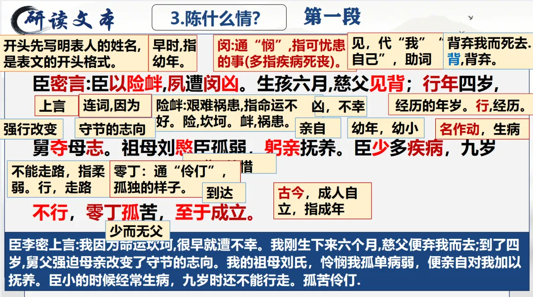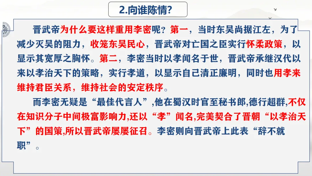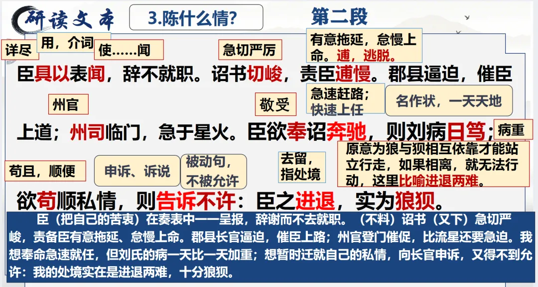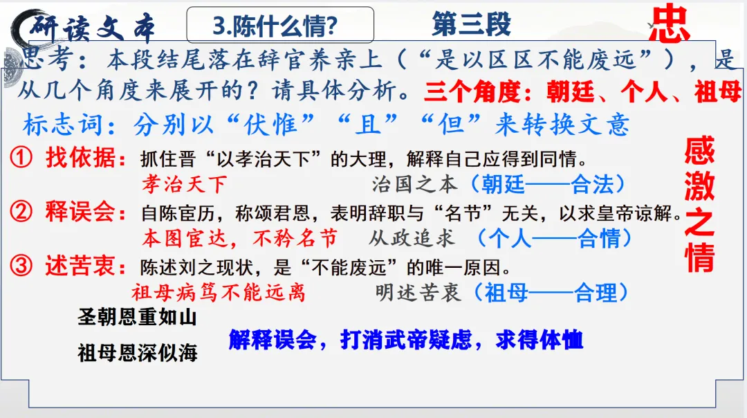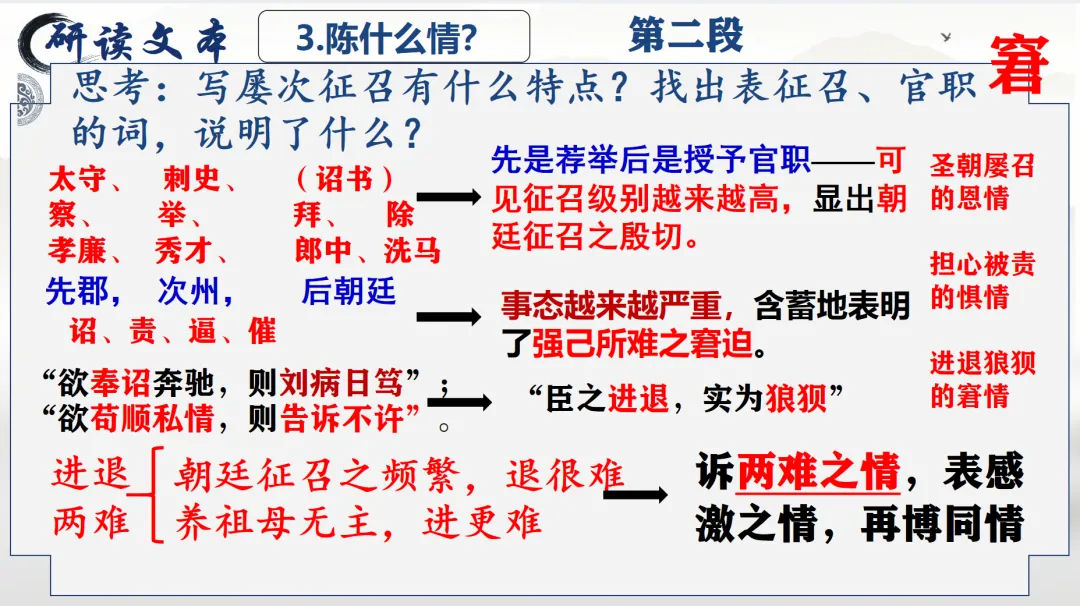 选必下教学课件┃进与退的抉择,情与理的博弈——《陈情表》教学课件