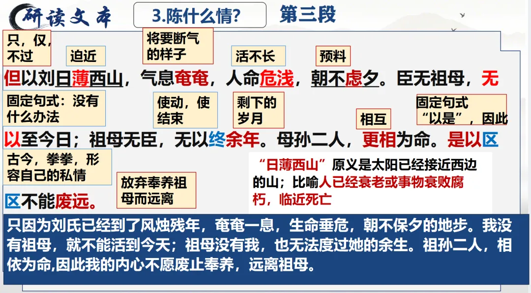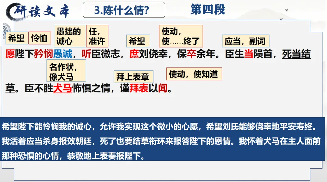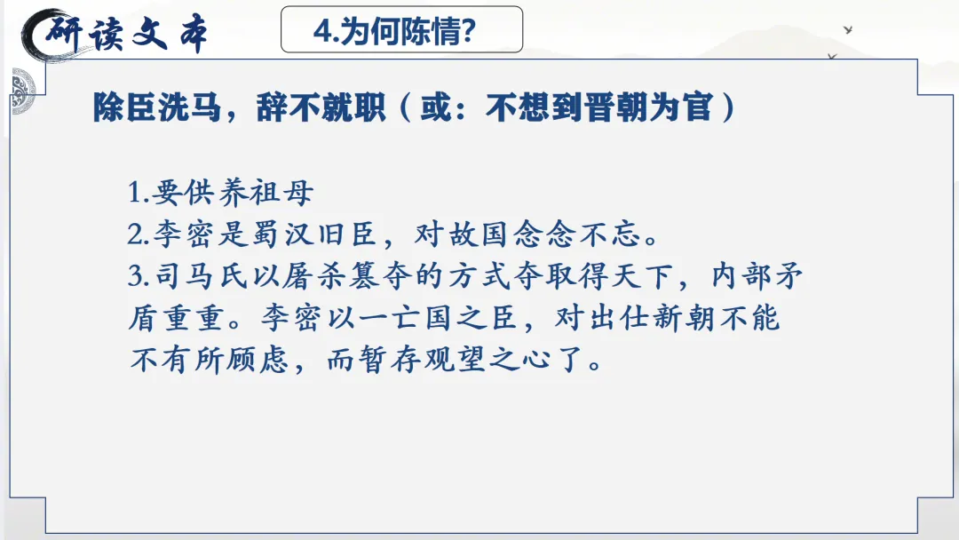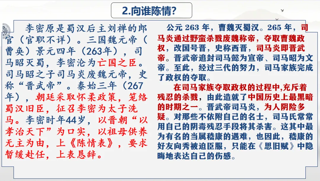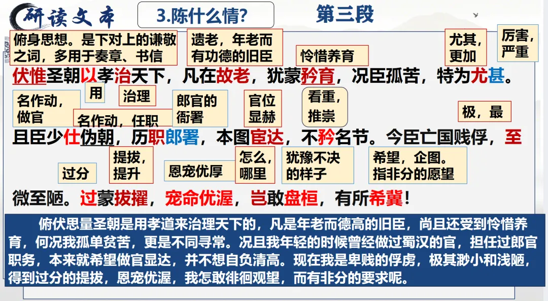 选必下教学课件┃进与退的抉择,情与理的博弈——《陈情表》教学课件