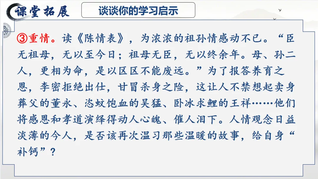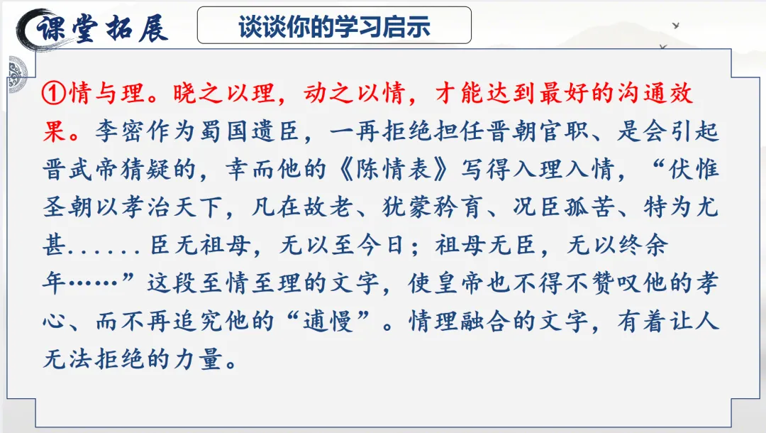 >选必下教学课件┃进与退的抉择,情与理的博弈——《陈情表》教学课件