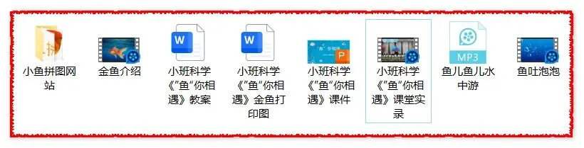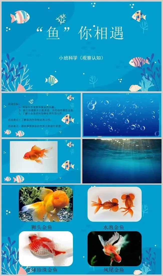 活动重点:感知了解鱼的你外形特征和生活习性。