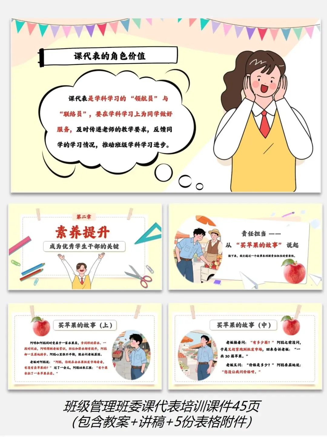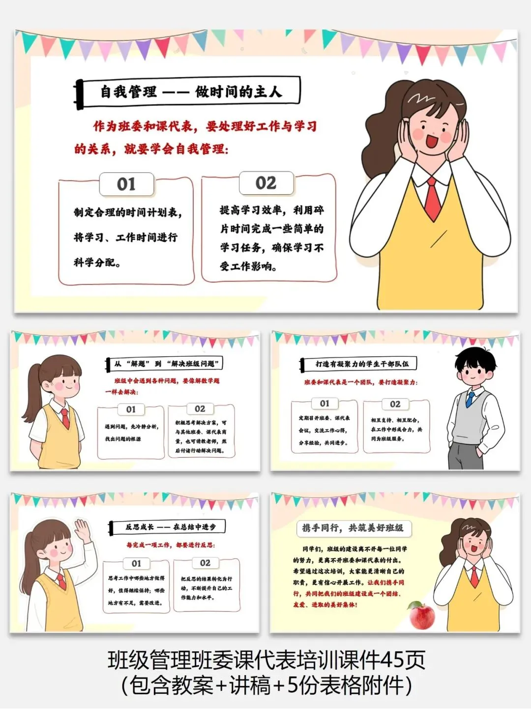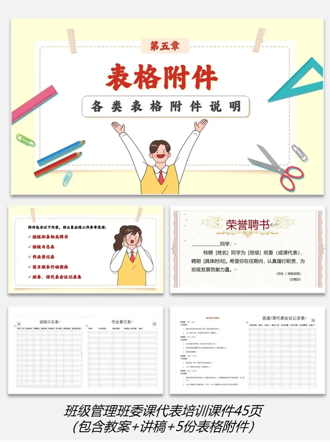 编号【222-7】班级管理班委课代表培训课件45页(包含教案+讲稿+5份表格附件)