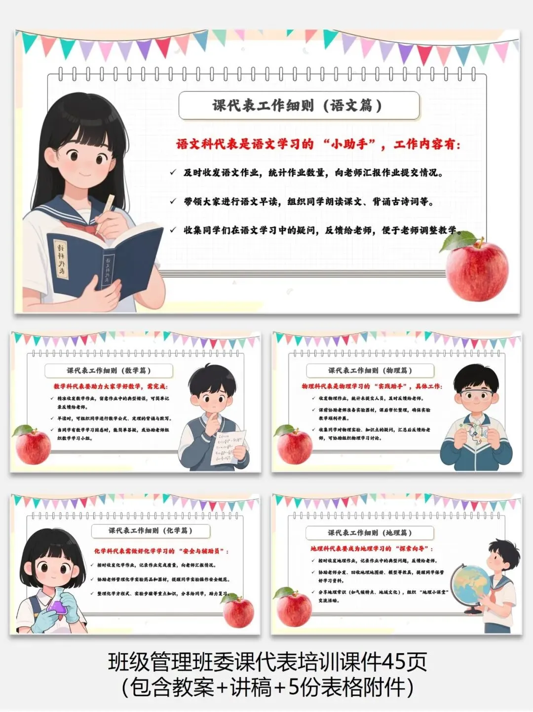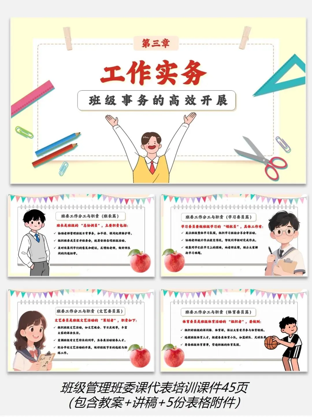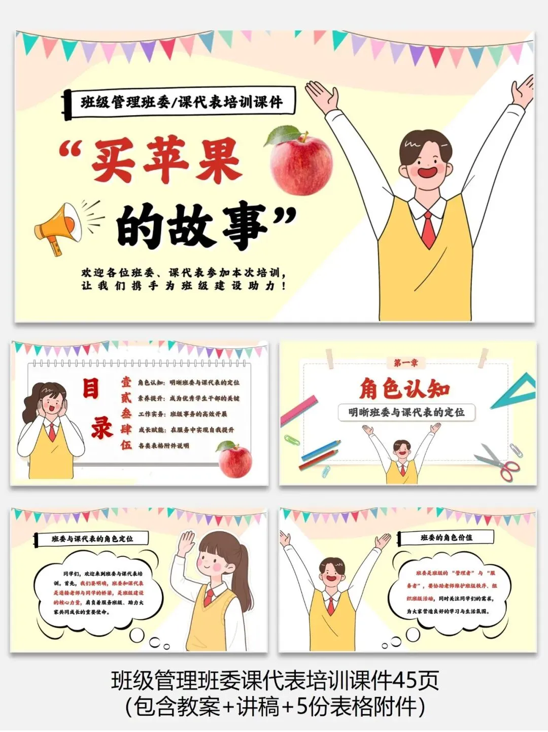 编号【222-7】班级管理班委课代表培训课件45页(包含教案+讲稿+5份表格附件)