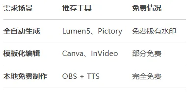• 想省时 → 用 Lumen5 或 Pictory(AI 自动生成)。