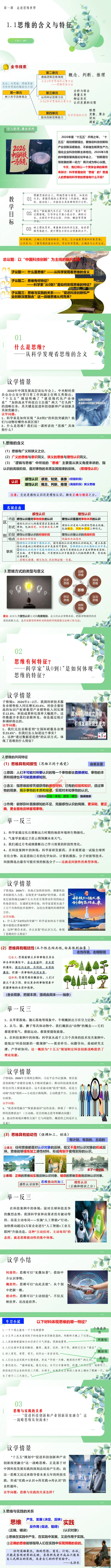 本节课以“中国科技创新”为主线一案到底,将抽象的思维理论融入学生熟知的时政案例中,较好地实现了理论联系实际。在教学中需要注意:一是控制每个探究环节的时间节奏,确保40分钟完成全部教学任务;二是在分析思维特征时,多引导学生结合自身学习生活中的实例进行思考,增强代入感;三是课后作业的拓展性短评要给予学生充分的思路提示,避免学生因无从下手而产生畏难情绪。