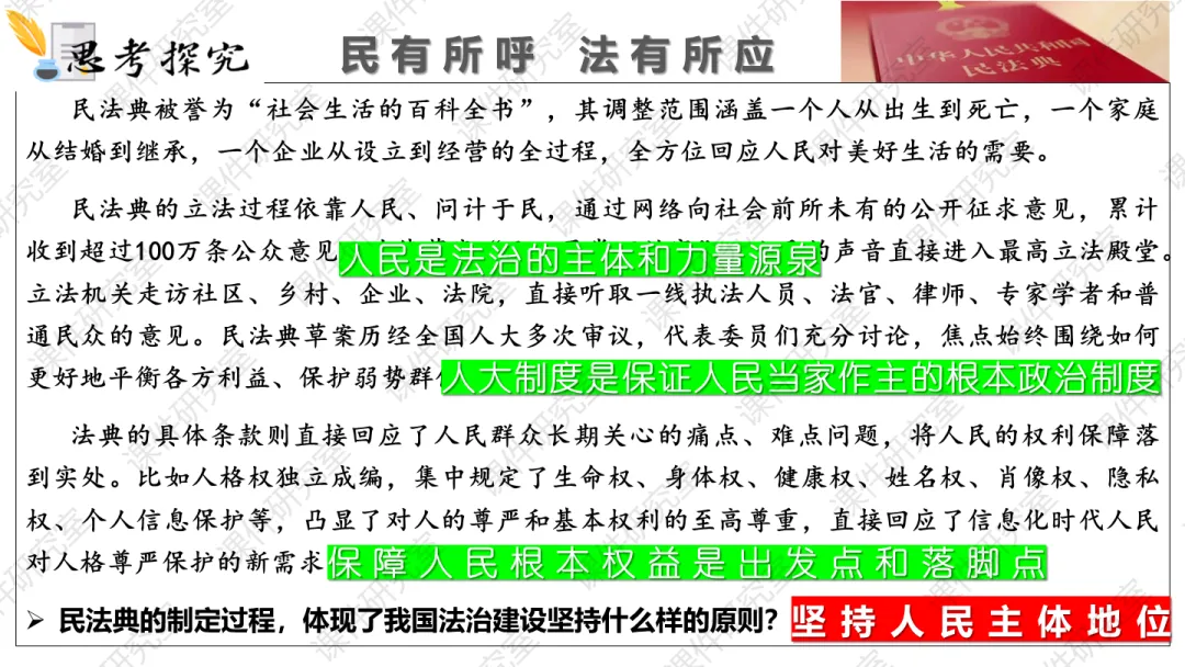新版教材必修3第七课的重要修订,以及课件《全面推进依法治国的总目标和原则》