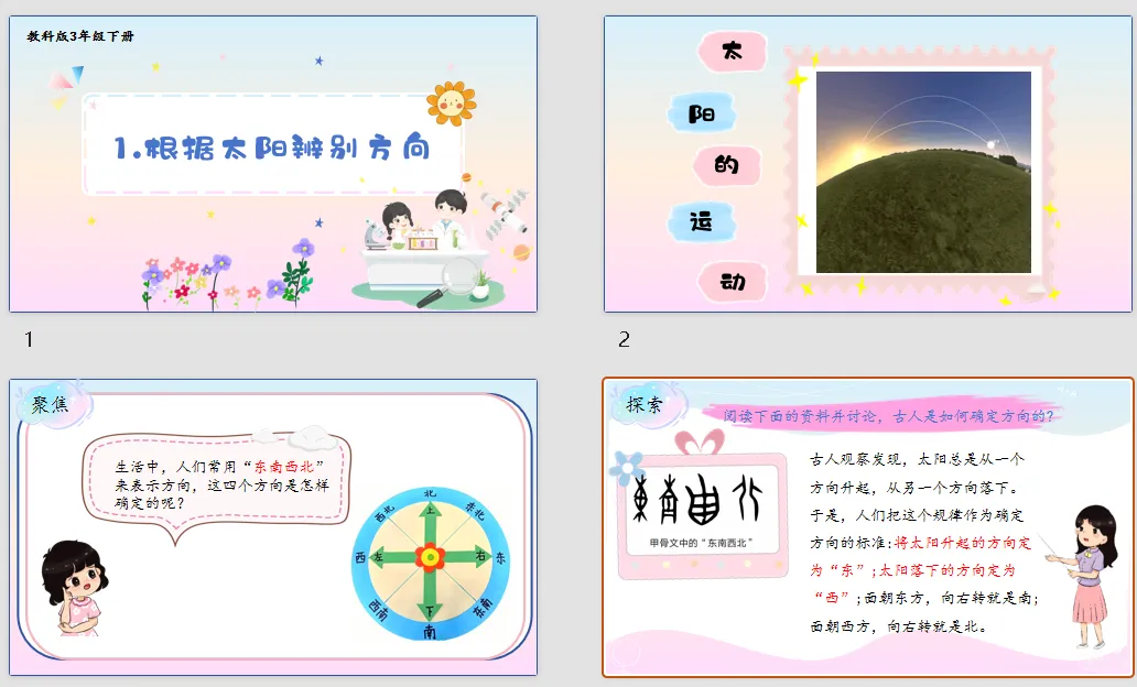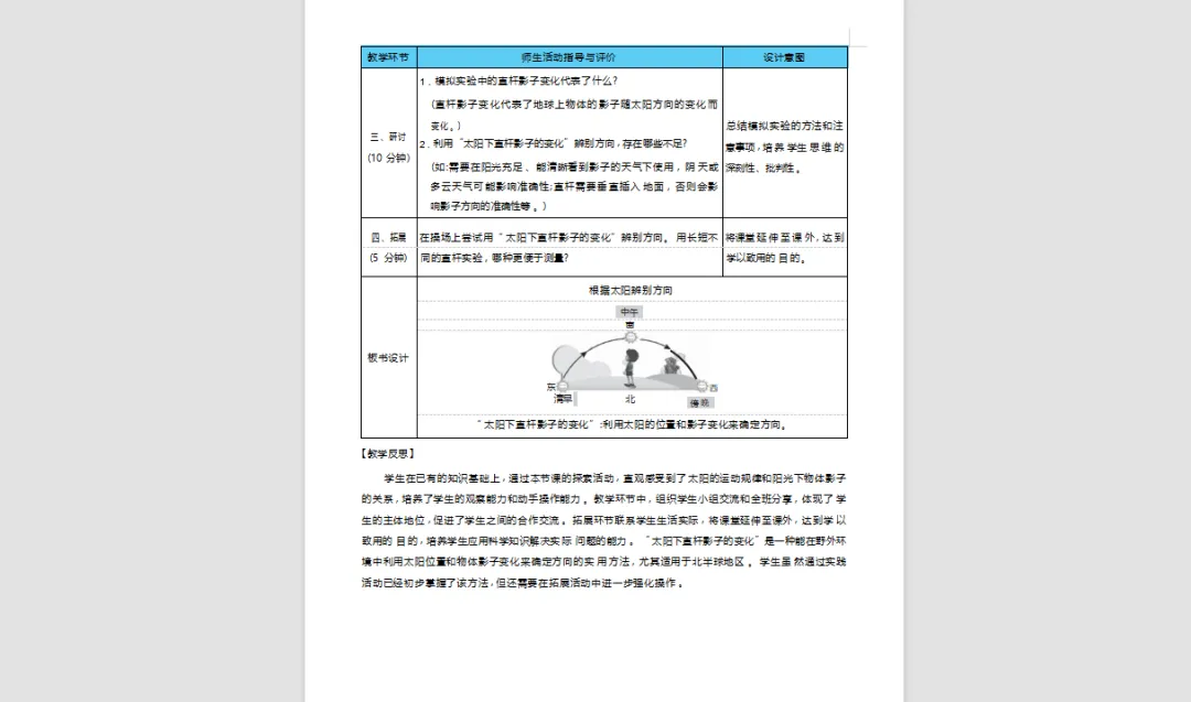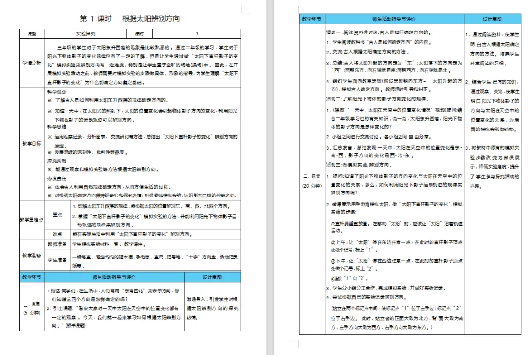 >【科学教案课件】新教材教科版版小学科学三年级下册全册文本配套教案(含反思)第1课《根据太阳辨别方向》