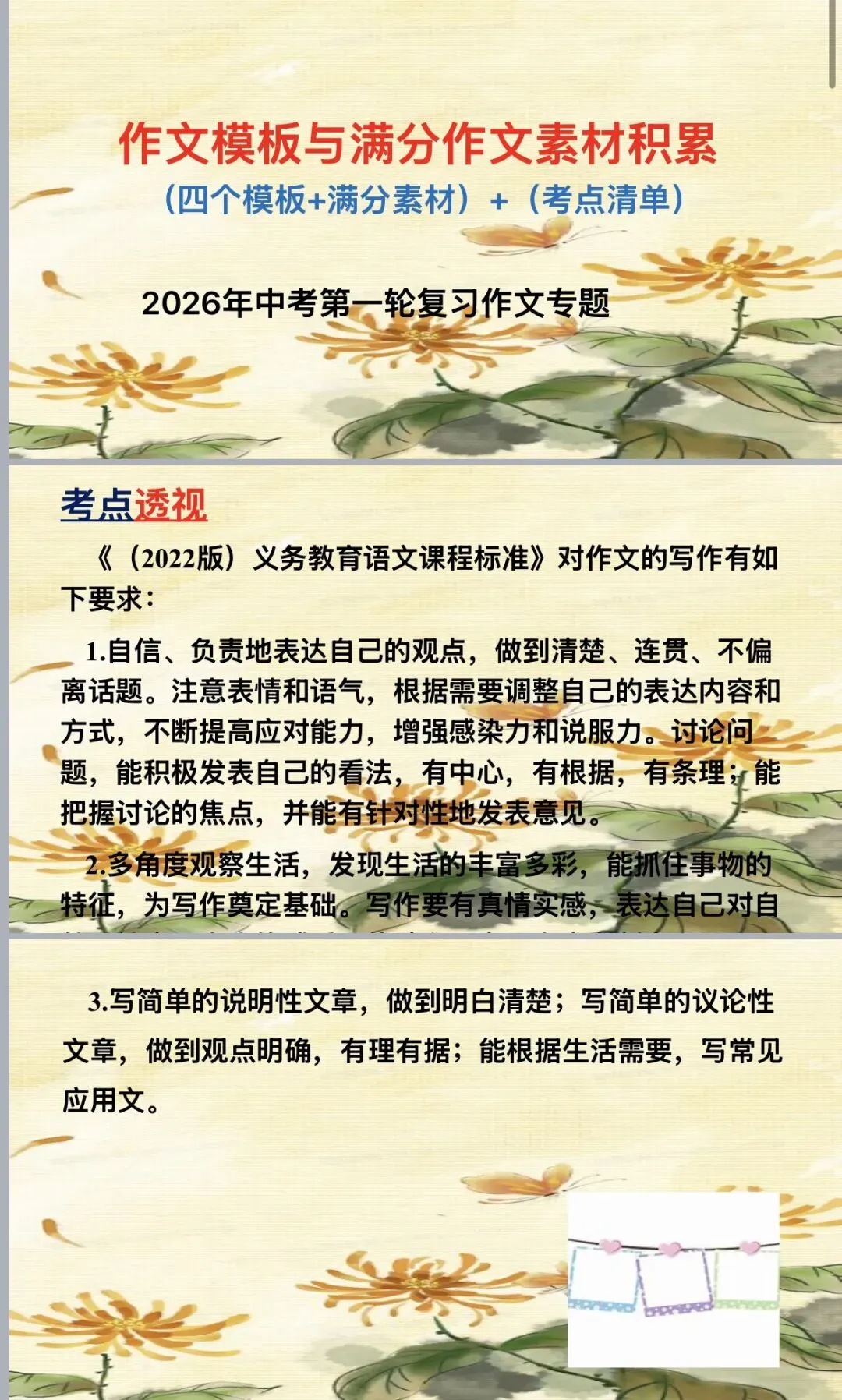 >课件|2026年九年级中考作文模板与满分作文素材积累