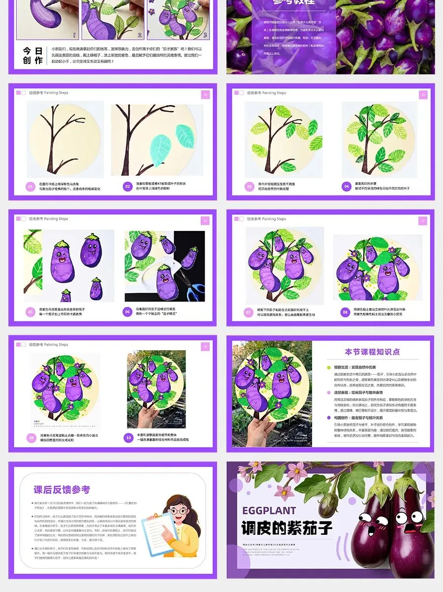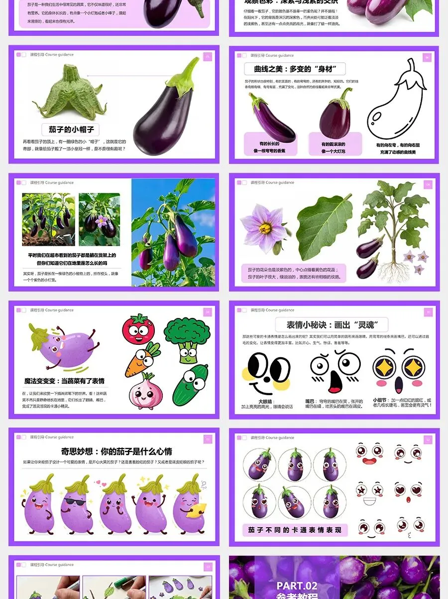 今天,我们就要用画笔把这位紫色的小伙伴画出来!你可以画一个真实的茄子,也可以发挥想象,给它加上可爱的表情,比如开心的、调皮的、惊讶的……让你的茄子变得独一无二!